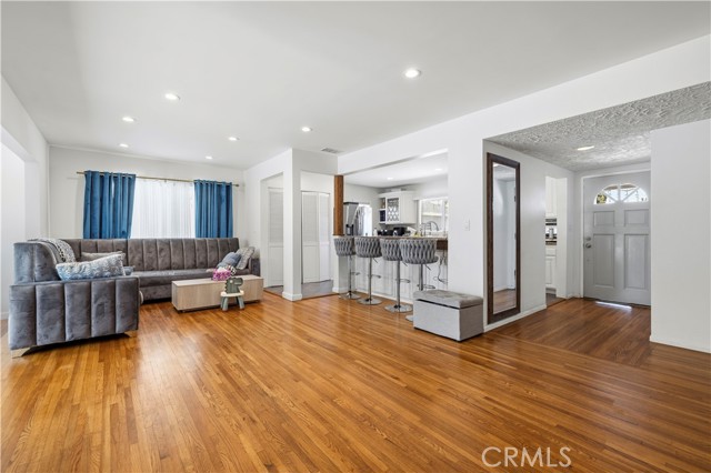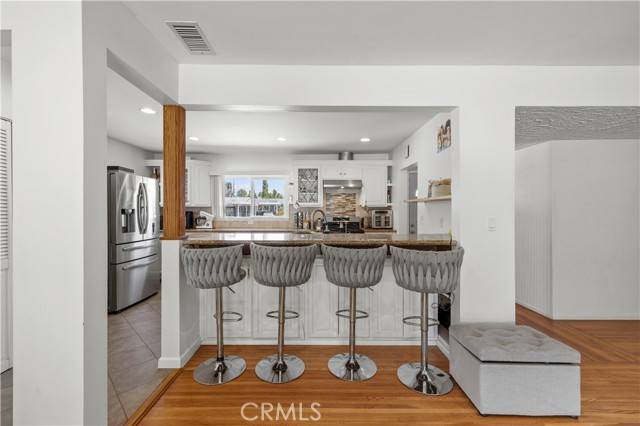 An exceptional opportunity to own a meticulously maintained Mid-Century Modern residence that perfectly blends timeless design with modern conveniences. This home has been thoughtfully curated with an unwavering commitment to pride and attention to detail, providing an unparalleled living experience. From the moment you step through the front door, you are welcomed into a bright and inviting living room that radiates charm and natural light. This space serves as an ideal sanctuary to relax after a long day or to host memorable gatherings with friends and family. The open-concept design effortlessly connects the living and dining areas, creating a spacious, flowing heart of the home that accommodates both comfort and functionality. At the center of this beautiful residence lies an exquisitely remodeled open-concept kitchen that is nothing short of spectacular. Featuring granite countertops, state-of-the-art stainless steel appliances, and an expansive breakfast bar, this kitchen is perfectly designed for everyday living as well as sophisticated entertaining. Whether you are preparing a casual meal or hosting an elegant soirée, this space will inspire culinary creativity and social enjoyment. Situated on an expansive lot, the property offers exceptional outdoor potential. Beyond the inviting swimming pool, there is ample