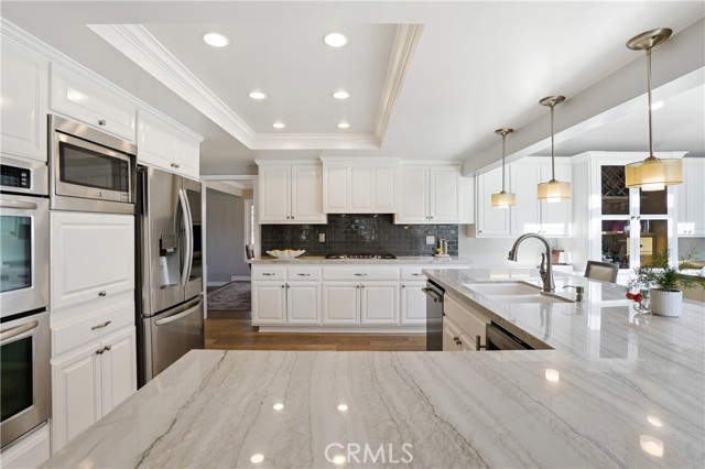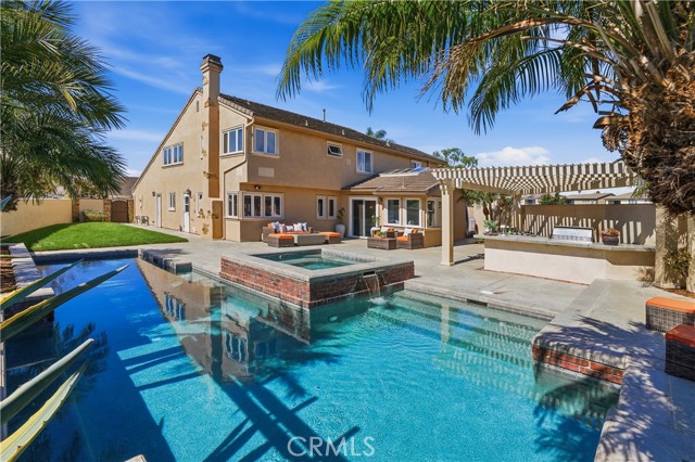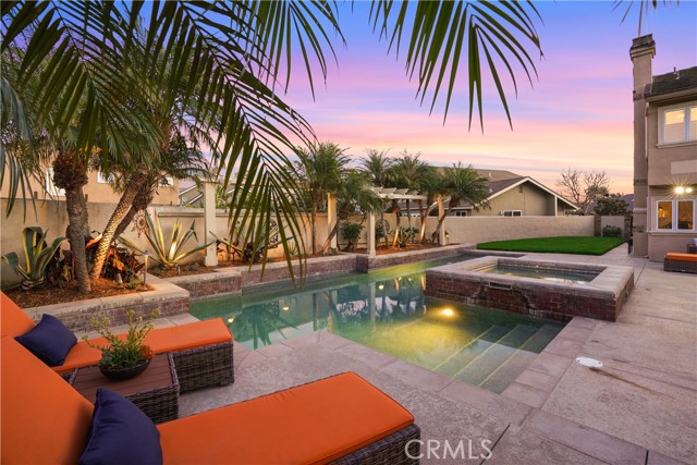 Welcome to a rare luxury opportunity ideally situated on a quiet cul-de-sac steps from the Bolsa Chica Wetlands with direct access to scenic trails leading to the beach. Set on an oversized lot with no neighbors behind, the backyard is designed for ultimate privacy and entertaining, This backyard is like having your own private resort which includes a stunning pool with oversized jacuzzi. built-in BBQ area, patio with bar seating, outdoor speakers, outdoor shower, and a large grass side yard great for kids or pets. There is an additional patio area through the living room french doors, separate from the rest of the backyard. Inside, this home features real wood flooring, abundant natural light enhanced by skylights, and two gas fireplaces creating warm, inviting living spaces. This residence offers the highly sought-after main floor bedroom and full bath, perfect for multigenerational living or guests. The chef’s kitchen is a true centerpiece, showcasing quartz countertops, a large island with bar seating, double ovens, walk-in pantry, pull-out coffee station, wine fridge, and a separate beverage center, blending functionality with modern luxury. Upstairs, the expansive primary suite offers a private retreat with a massive walk-in closet outfitted with custom California Closet cabinetry and a spa-inspired en-suite bath featuring dual vanities. Additional highlights include a dual-zone climate control, separate laundry room with sink and a 3-car garage with epoxy flooring and built-in cabinetry. This is Southern California coastal living at its finest.