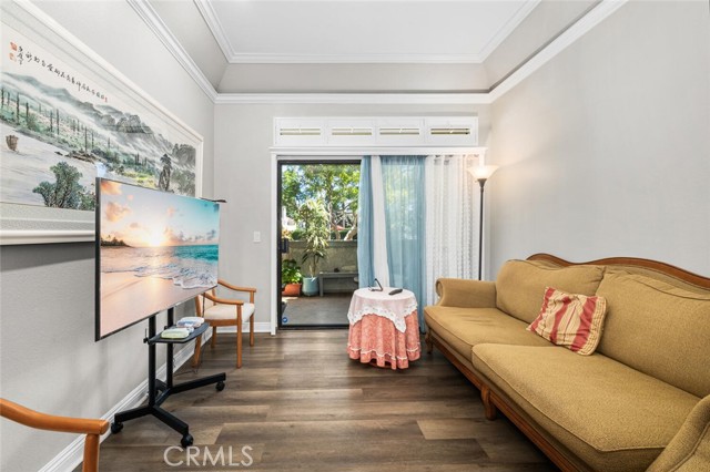 Welcome to luxury coastal living in Huntington Beach’s highly sought-after Cabo del Mar community. Nestled within a quiet, gated enclave, this serene retreat offers resort-style amenities including a sparkling pool, soothing spa, and beautifully maintained lush landscaping. Perfectly positioned within the community, this charming 1-bedroom residence invites in refreshing ocean breezes through expansive sliding doors. Inside, you’ll find a thoughtfully designed interior featuring a neutral color palette, handsome laminate flooring, crown molding, panel doors, elegant shutters, recessed lighting, and a cozy brick fireplace—blending comfort with timeless style. The upgraded kitchen showcases warm wood cabinetry, a stylish tile backsplash, and sleek quartz countertops—ideal for both everyday living and entertaining. The spacious living area flows seamlessly to a private balcony overlooking tranquil greenbelts and the pool, creating the perfect setting for outdoor relaxation. Imagine unwinding with a cool drink as you take in the coastal sunset. The bedroom offers generous double closets and easy access to a well-appointed bathroom with a dual-sink vanity. Additional conveniences include in-unit stackable laundry and a private storage closet on the balcony. Enjoy the best of coastal living with close proximity to world-class beaches, shopping, dining, and endless outdoor activities. This is your opportunity to experience the laid-back elegance of Cabo del Mar—where every day feels like a vacation.