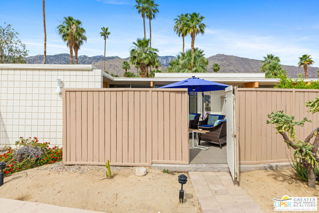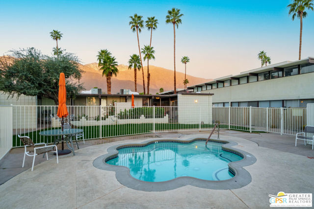 Located just steps from the pool and community amenities, this property offers the perfect blend of personal vacation retreat and investment opportunity in the California desert. Whether you're relaxing poolside, socializing with neighbors at the Sunshine Terrace, or soaking in the laid-back Palm Springs lifestyle, this home delivers it all. Situated within The Ocotillo Lodge, a Class 1 Historic District in the City of Palm Springs, this unit combines charm with convenience. It features a unique layout with an entry door located outside the community gates facing the south parking area, along with a private patio gate that opens into the gated community. This is the larger of the two available floor plans, offering approximately 590 sq. ft. Known as a "Courtyard" unit, it boasts an expanded outdoor living space ideal for enjoying the beautiful desert climate. Buyer and agent due diligence suggested with regard to all property features, including Mills Act eligibility.
