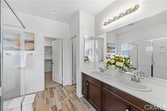 The first floor includes a formal living room, a guest bedroom with a full bathroom, and a spacious primary suite with its own private bath—offering flexibility for multi-generational living or added convenience. Upstairs, you’ll find three additional bedrooms with walk-in closets, a shared bathroom with dual vanities and a soaking tub, as well as a versatile loft space that can be used as a home office, media room, or play area.