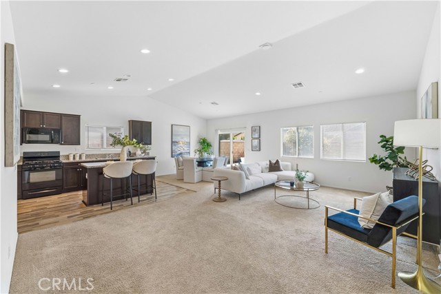 The thoughtfully designed open-concept layout seamlessly connects the kitchen, dining, and living areas, making it ideal for both daily living and entertaining. The kitchen is equipped with granite countertops, stainless steel appliances, a center island, and a spacious dining area.