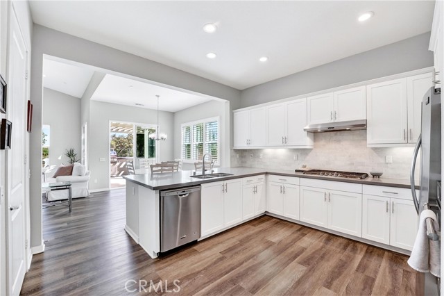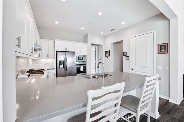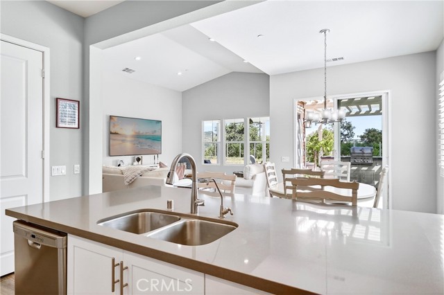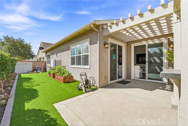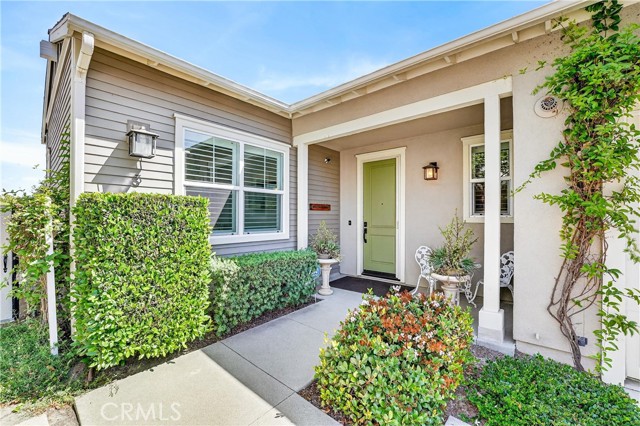 Set on a desirable corner lot within the sought-after 55+ Vireo neighborhood in the Escensia village of Rancho Mission Viejo, this beautifully upgraded single-level home offers a seamless blend of comfort, functionality, and elevated outdoor living with panoramic canyon and hillside views. Featuring 2 bedrooms and 2.5 bathrooms, the thoughtfully designed layout is enhanced by soaring ceilings, recessed lighting, and plantation shutters throughout, creating a bright, open, and refined feel. The backyard is a true standout, designed as a private retreat with a covered patio and built-in outdoor kitchen complete with BBQ, sink, mini fridge, and generous barstool seating, making it ideal for both entertaining and everyday enjoyment. A custom putting green adds a fun and unique touch, while the firepit seating area and tranquil water fountain elements create a peaceful setting to relax and take in the surrounding views. The side yard features raised garden boxes, perfect for those who enjoy planting and outdoor living. The attached 2-car garage has been upgraded with epoxy flooring and built-in storage, and the home also includes a water softener system for added comfort. Owned solar adds efficiency and long-term savings. As part of the Gavilan 55+ community, residents enjoy access to age-restricted pools, clubhouses, activities, and social clubs that foster a strong sense of connection and community for its residents. Beyond Gavilan, Rancho Mission Viejo offers an exceptional lifestyle with dozens of parks and playgrounds, resident-led clubs and organizations, a dog park, campground, and the Canyon House Coffee Shop. The highly sought-after Hilltop Club serves as a central hub for fitness and leisure, featuring an open-air gym, fitness classes, resort-style pools, an arcade, bar, and inviting lounge areas where residents can relax by the fireplace while taking in breathtaking views.