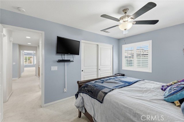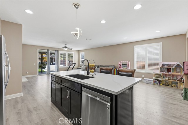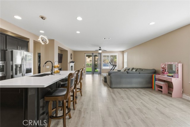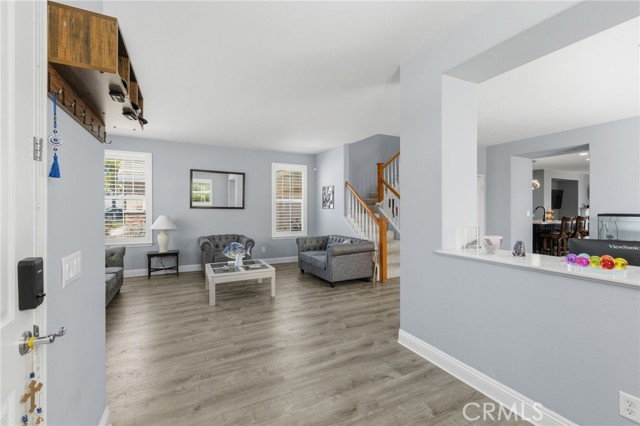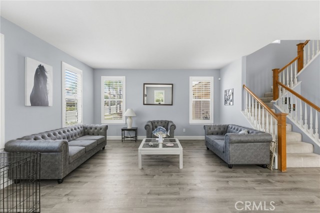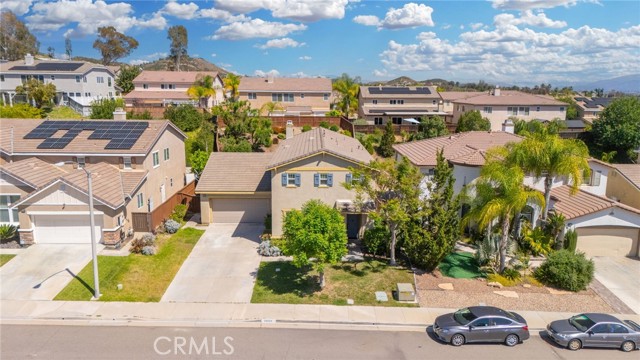 Welcome Home ! Located in Clayton Ranch community situated near the Wildomar/Murrieta border. Property features an open concept just perfect for entertaining. There is a bedroom downstairs as well as an adjacent full bathroom. Property features a spacious family room with cozy fireplace and the secondary dining area located just off the kitchen. Upstairs, you will be wowed with the ample sized owner’s suite with oversized walk-in closet and spa like bath with dual sinks and separate tub and shower unit. The upstairs laundry room is conveniently next to the owner’s suite and offers a deep basin sink and window. Down the lengthy hall are 2 additional bedrooms and another full bathroom. Home has vinyl plank flooring all throughout the downstairs area, with the upstairs featuring carpet. One of the garage spaces was converted into game room. Backyard area has artificial turf and cement recently installed. This home is perfect for entertaining guests and family gatherings.