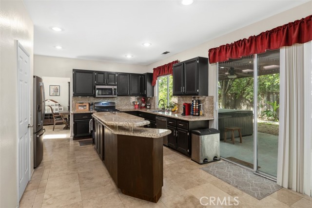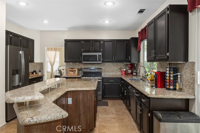 Desirable 4-bedroom, 3-bath home with extra space downstairs perfect for an office or a potential 5th bedroom. As you step through the double entry doors, you’re welcomed by high ceilings and an abundance of natural light. Interior appointments include travertine flooring, engineered hardwood, and upgraded light fixtures. Downstairs features a formal dining and living room combo, plus a kitchen with granite counter tops, island, GE slate-finish appliances, pantry and the refrigerator is included. The kitchen opens to a family room with a cozy firplace with polished marble surround. There is a full bath on the first floor. The laundry room is off the garage and includes the washer & dryer. The primary suite includes his-and-hers closets, a separate tub and shower, and a vanity with dual sinks and vessel sinks with brushed silver finish faucets. Three more bedrooms share another bathroom with vessel sinks and rubbed bronze finish faucets. The backyard features a covered patio, private, above-ground spa and plenty of space for entertaining. Home also has a three-car garage. The highly sought after community of Paloma Del Sol offers incredible amenities including 5 community pools, basketball courts, tennis courts, tot lots, recreation areas throughout, several miles of walking trails & more. Located in the desirable Temecula School District, and minutes to shopping, wineries and I-15.