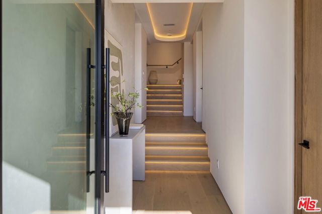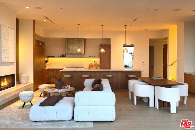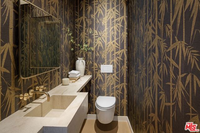 Best value VIEW ESTATE in all of Hollywood Hills! Brand new construction home with breathtaking jetliner views of the city - in one the best locations above Chateau Marmont - minutes away from all the action and vibes of the The Sunset Strip, yet peacefully tucked away on a quiet closed-end street. House is complete with gated parking, elevator to all floors, a pool, a theater, and a spa-like master suite with a private lounge room. The thoughtfully designed floor plan features four en-suite bedrooms, a theater with wet bar, an elevator, an indoor green wall, and a top-level primary suite complete with a private lounge, a steam shower, and a Calacatta Viola clad spa-like bath. Expansive, fully retractable glass doors open to outdoor living spaces that include a sparkling pool, summer kitchen, fire pit sitting area, and panoramic city and Sunset Strip views. Designer finishes throughout feature walnut cabinetry, Taj Mahal quartz and leathered granite countertops, herringbone Italian lime flooring, custom travertine sinks, plaster walls, a striking all-brass kitchen vent, and a dramatic double-wide glass pivot entry door. Additional features include surround sound, a laundry chute, and a two-car garage with ample gated driveway parking. Each bedroom opens to its own balcony framing the skyline, while a separate downstairs guest suite offers privacy and its own wet bar. A true entertainer's paradise and serene retreat in one, this residence exemplifies prime Hollywood Hills living.