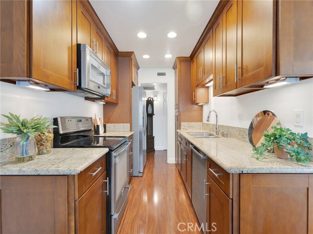 Welcome to this smaller secured access building located in one of Encino's most desirable neighborhoods. Spacious 2 BR 3 BA residence offers bright and open living room/den combination, designed for comfortable living and entertaining at 1440 sq ft. Updated kitchen with granite counters and stainless appliances. Spacious rooms with great closet space. Two balconies for indoor-outdoor enjoyment. This home delivers the perfect blend of comfort, convenience and value ideally located near shopping, dining, and everything Encino has to offer.