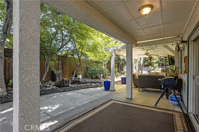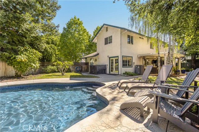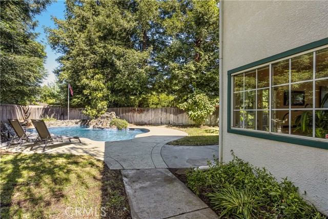 Step outside to your own retreat—complete with a pool for warm summer days, a tranquil koi pond, and a covered patio for shaded outdoor living. Private fencing and mature landscaping enhance the sense of seclusion. Owned solar helps keep utility bills low, and zoned heating and cooling with multiple thermostats adds efficiency and comfort throughout the home.