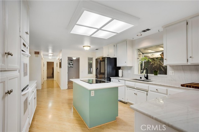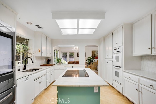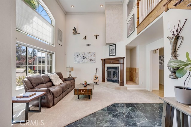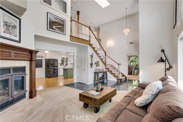 Inside, high ceilings and an open great room create a bright, comfortable space with a gas fireplace. The kitchen is equipped for everyday living and entertaining with a new induction stovetop for fast, precise cooking, new quartz counters, plus double ovens and an island for added capacity and workspace.