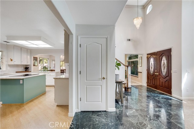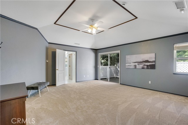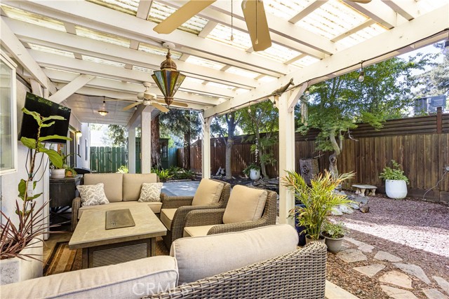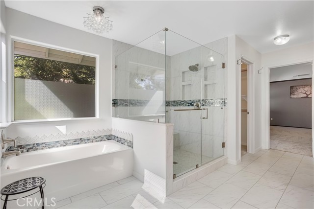 Upstairs, the primary suite offers a private balcony overlooking the backyard, creating a peaceful place to unwind. The remodeled bathroom includes dual vanities, a soaking tub, and a walk-in shower for a spa-like experience.