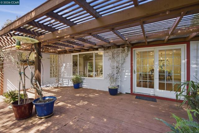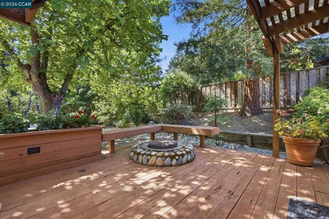 Nestled in a serene, park-like setting among majestic redwood trees in the heart of the Virginia Hills neighborhood, this exceptional property offers a rare blend of privacy, beauty, and a relaxing lifestyle. A spacious covered deck invites year-round enjoyment, overlooking a tranquil water feature, relaxing hot tub, and an inviting outdoor fireplace—creating the ultimate backdrop for both peaceful evenings and memorable gatherings. This charming three-bedroom, two-bath residence is ideally situated in the highly desirable Virginia Hills neighborhood of Martinez. Thoughtfully updated bathrooms, refinished hardwood flooring, and fresh interior paint enhance the home’s light, bright, and move-in-ready appeal. Designed with both comfort and entertainment in mind, the home seamlessly connects indoor and outdoor living spaces, making it perfect for hosting family and friends. The expansive backyard also features a versatile cement pad at the rear of the property—ideal for a future ADU, artist’s studio, workshop, or additional creative space. A truly special opportunity to own a private retreat in one of Martinez’s most sought-after communities. Close to shopping, entertainment, and restaurants.