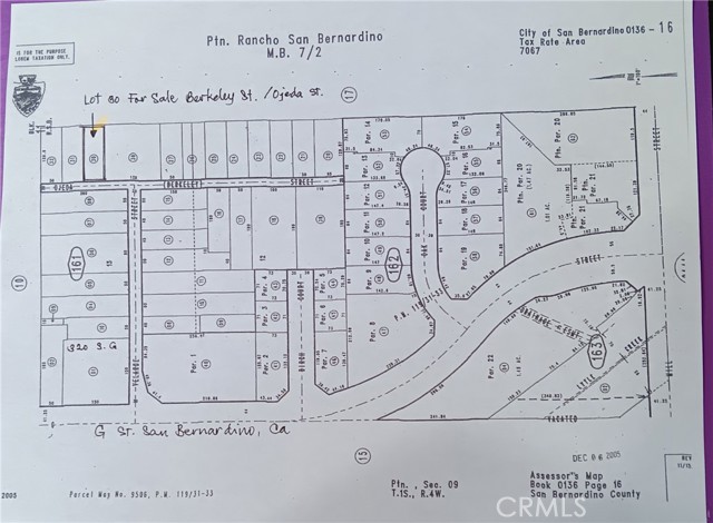 Lot 30 on the Assessor's Map. Flat Land next to an occupied residential property. Buyers to verify current land use with the City of San Bernardino. Please check Lot 26 currently listed on the south side of Berkeley St.