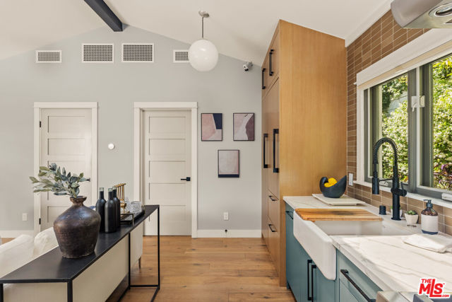 Inside, the two-bedroom, one-and-a-half-bath residence unfolds with an effortless, open-plan layout designed for both living and working. Warm hardwood floors run throughout, while thoughtfully curated finishes from designer-tiled baths to refined millwork create a cohesive, quietly sophisticated palette. The kitchen serves as the home's center piece: a tailored composition featuring a Wolf range, Sub-Zero built-in refrigerator, Bosch dishwasher, farmhouse sink, and integrated Asko laundry - all selected for the most discerning of buyers. Tucked into West Hollywood's coveted Norma Triangle, this modern Craftsman cottage by Los Angeles architect Corey Miller offers a thoughtful take on a classic California style. Just blocks from Beverly Hills and moments from the Pacific Design Center, the home blends architectural character with an easy, livable sensibility. Architectural corner windows bring in abundant natural light while adding a clean, modern edge to the home's timeless silhouette. Outside, fragrant French shrub roses line the property, creating a welcoming first impression each spring. Gated front and side patios offer peaceful, private outdoor spaces for entertaining, relaxing, or accommodating pets, with clean hardscaping that keeps the look refined yet low maintenance. Both architectural and approachable, the residence blends timeless craftsmanship with modern restraint. Set near some of West Hollywood's best restaurants, cafes, boutiques, and design destinations, Lloyd Place offers the utmost in turnkey sophistication, in the heart of one of West Hollywood's most desirable enclaves.