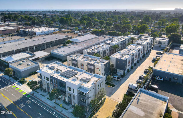 Completed in 2015 and impeccably maintained, this sophisticated south facing end-unit townhome exemplifies the best of modern design, functionality, and flexibility.A gated private patio welcomes you--an inviting outdoor space ideal for a bistro setting or curated garden planters. The ground level features a versatile office or optional bedroom, thoughtfully equipped with a Murphy bed and closet, making it perfect for guests, remote work, or creative use.The main living level is a showcase of contemporary living, offering an open-concept floor plan enhanced by soaring ceilings and expansive windows that flood the space with natural light. The living room is both stylish and functional, featuring a built-in entertainment alcove, ceiling fan, and a charming corner accented with pendant lighting--ideal for a reading nook or lounge space.At the heart of the home, the chef's kitchen impresses with an extended center island complete with dual sinks, breakfast bar seating, and designer pendant lighting. Stainless steel appliances, abundant counter space, and custom cabinetry with soft-close drawers and removable hinges elevate both form and function. The adjacent dining area is anchored by a statement chandelier and enjoys tranquil treetop views, creating a warm yet refined atmosphere for everyday living and entertaining.Upstairs, two well-appointed bedroom suites provide comfort and privacy. Each features high ceilings, ceiling fans, and oversized windows. The primary suite offers a spacious closet, dual vanities, a private water closet, and an expansive shower. The secondary suite enjoys serene treetop vistas and includes a full bath with quartz-topped vanity and a deep soaking tub.Designated as a live/work residence, this home offers exceptional flexibility for business use, creative studios, or professional services--all from the comfort of your own space. Ample guest and client parking further enhances its practicality. Energy efficiency is thoughtfully addressed with eight solar panels, helping to keep utility costs in check.Residents also enjoy a beautifully landscaped community courtyard with inviting seating areas--an ideal setting for relaxation or casual gatherings. This is a rare opportunity to own a modern townhome that seamlessly blends coastal-inspired living with urban convenience.