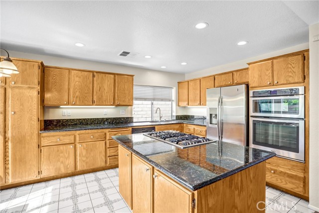 ETIWANDA SCHOOL DISTRICT! NO HOA! ONE BEDROOM DOWNSTAIRS! Rare opportunity to own a 2,369 sq ft home at the end of a quiet cul-de-sac, directly across from the elementary school—an ideal blend of comfort and convenience. Step into a light-filled living room with soaring ceilings and wood laminate flooring, flowing seamlessly into the formal dining area. The kitchen features granite countertops, a large island with 5-burner cooktop, and open access to the breakfast nook and inviting family room with fireplace. The main level also includes one bedroom and a full bathroom, offering excellent flexibility for guests or multi-generational living.