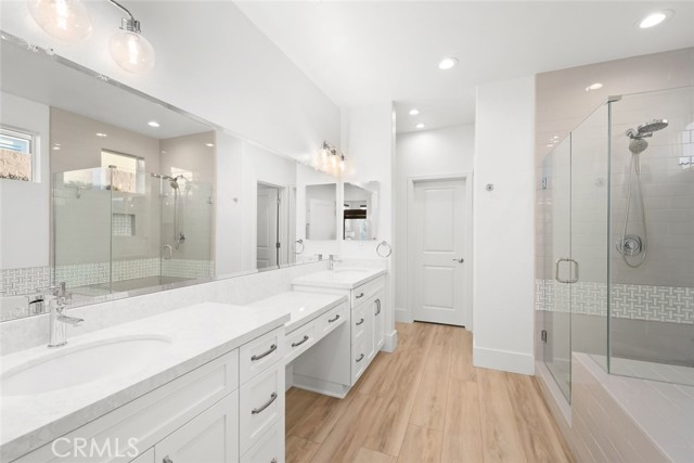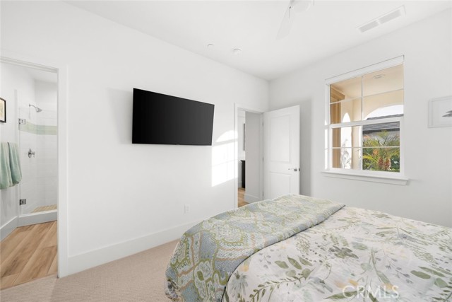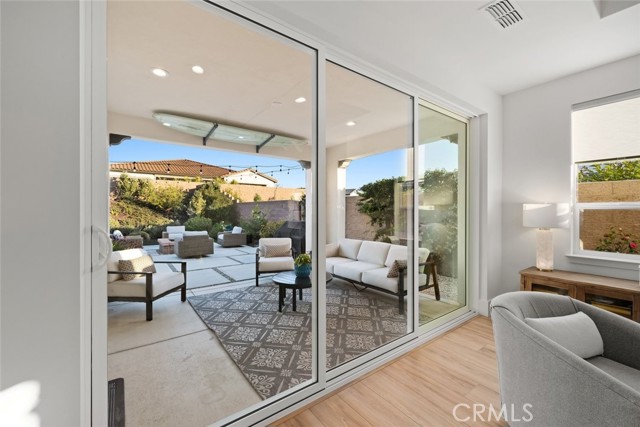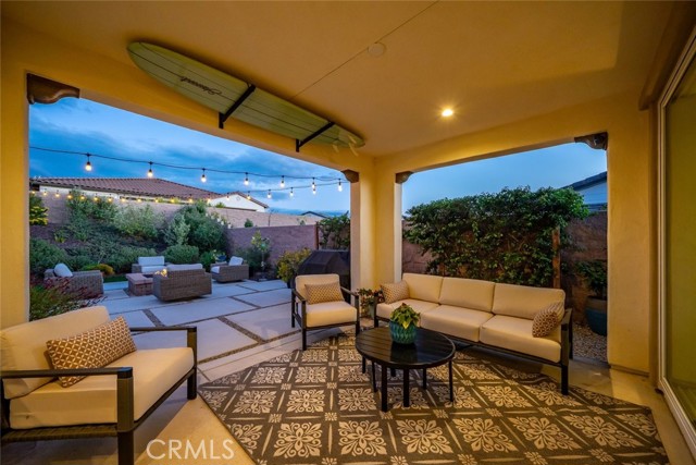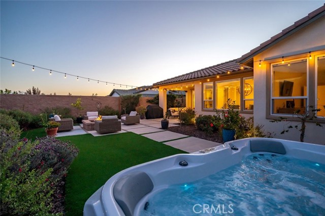 A dramatic three-panel sliding glass wall opens the living space to the professionally designed backyard, creating a seamless indoor–outdoor experience. The yard is a private, low-maintenance retreat featuring artificial turf, natural landscaping, landscape lighting, a large firepit, and a welcoming covered patio for your enjoyment. The inviting hot tub sits just steps from the primary suite, offering a peaceful place to unwind under the stars and enjoy the quiet beauty of the setting. The primary suite offers a spa-inspired bathroom featuring a frameless glass shower, soaking tub, walk-in closet with organizers and quartz countertops. Throughout the home, premium upgrades elevate comfort and style, including solid-core interior doors, 7" baseboards, skip-trowel wall texture, custom flooring, LED lighting, enhanced data wiring, owned solar, EV charger, Air conditioning, garage insulation, Smart space utility room, designer lighting, custom shelving, and curated enhancements to further enrich the home’s refined aesthetic. With over $269,000 in upgrades, this residence stands apart as a rare blend of luxury, coastal charm, and resort-style living—crafted for those who appreciate thoughtful design, quality craftsmanship, and a truly turnkey experience.