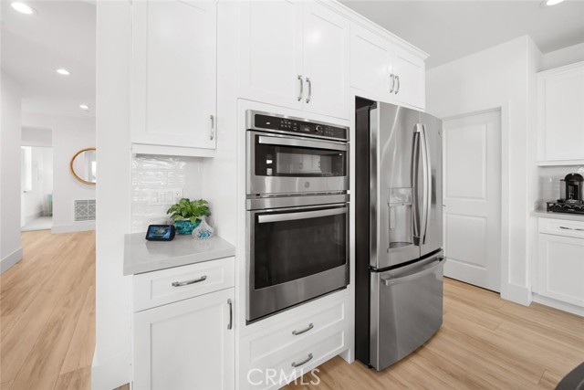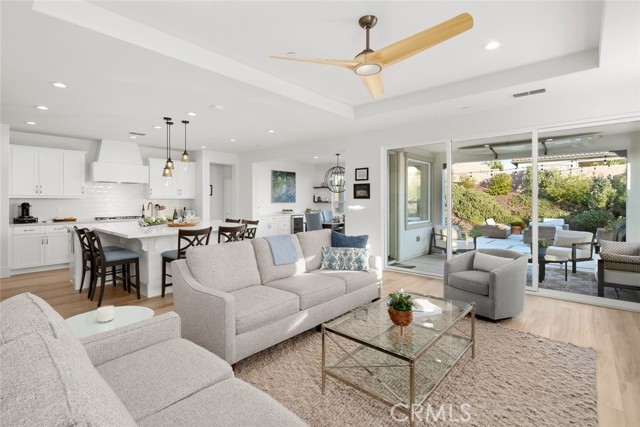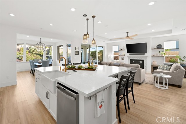 With captivating coastal views from its front porch and a quiet cul-de-sac setting, 1335 Silvia Lane sits gracefully perched to embrace the long-range scenery, offering an immediate sense of timeless inspiration, and the elevated coastal living that defines this home. Inside, sunlight fills the open floorplan, where the chef’s kitchen takes center stage with high-end appliances, a farmhouse sink, custom Shaker cabinetry, and pendant lighting that highlight the stunning oversized quartz island with seating for six. The kitchen flows effortlessly into the dining and living areas, where a Heat & Glo fireplace with custom tile surround and oak shelving adds warmth and character.