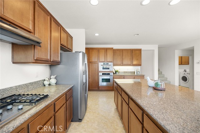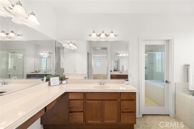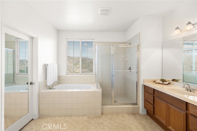 Need more room? This spacious 5-bedroom, 4-bathroom home with an upstairs loft offers room for everyone and more. Gorgeous mountain views with no rear neighbors! As you arrive, you’re welcomed by mature landscaping, a charming front porch, and great curb appeal that sets the tone for what’s inside. The expansive kitchen is the heart of the home, featuring a large center island, granite countertops, stainless steel appliances, an abundance of cabinetry, an eat-at bar, and both a casual dining area and a separate formal dining room. The kitchen opens seamlessly to the oversized family room with a cozy fireplace—perfect for everyday living and entertaining. You’ll also find a large formal living room, along with a bedroom and full bathroom conveniently located on the main floor. Upstairs, enjoy a generous loft/bonus room offering flexible living space. The oversized primary suite features a spacious bathroom with dual vanities, a soaking tub, step-in shower, and a large walk-in closet. A secondary junior suite includes its own private bathroom, along with two additional bedrooms, a full hall bathroom, and a large linen closet. Additional highlights include a downstairs laundry room with a utility sink and ample cabinet storage, plus the convenience of two separate staircases located on each side of the home. The 3-car tandem garage offers plenty of space for parking and storage! Step outside to a backyard that’s a blank canvas, ready for your personal vision, with no rear neighbors and stunning mountain views. Located in the desirable Rosetta Canyon community, residents enjoy amenities including scenic walking trails, parks,sports courts, and dog park. Conveniently situated near the 15 and 215 freeways, making it ideal for commuters. Images may include virtual staging to help visualize the property’s potential. Actual property condition may differ.