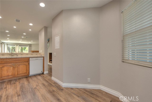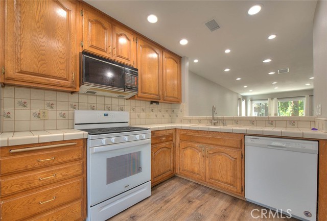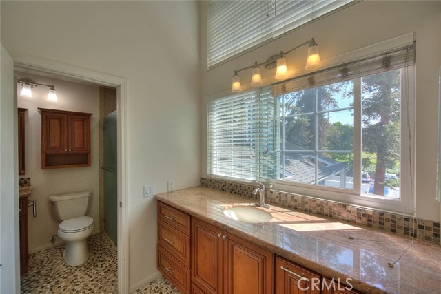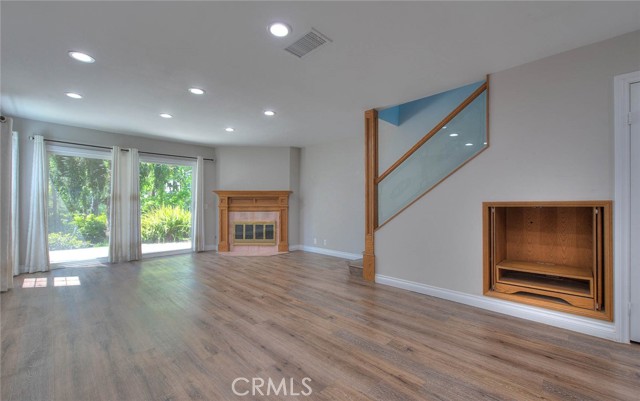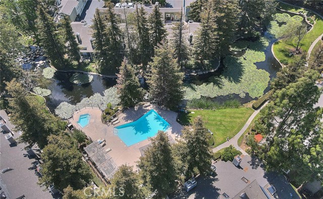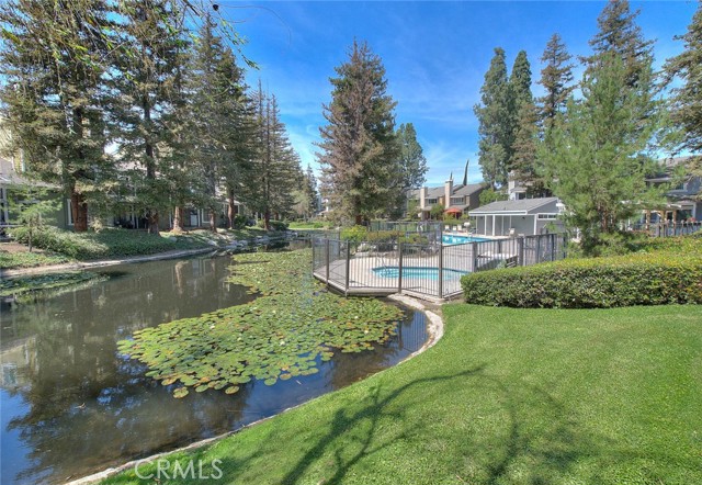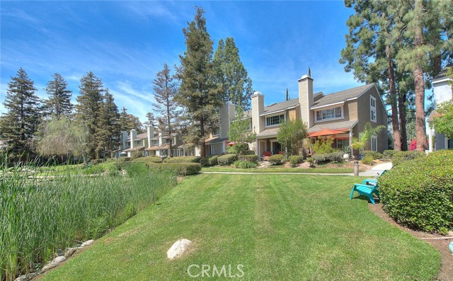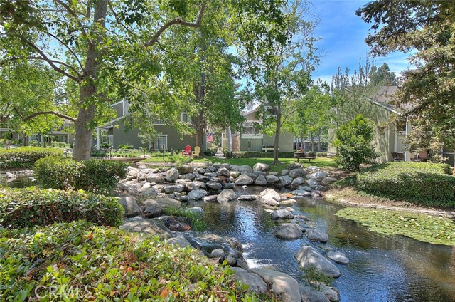 Appealing 2 bedroom, 1 1/2 bathroom condo located in the beautiful "Morningside on the Lake" community. Meandering streams, beautiful green belts and majestic mature trees create an incredibly serene setting for the lucky residents of this complex! A nicely designed floorplan features a single car garage with access to a private courtyard entry of the unit. A sizeable living room enjoys an inviting fireplace with upgraded mantle, laminate flooring, upgraded recessed lighting and access to the back patio. The kitchen has bar top dining, a space that would fit a bistro set for casual informal dining and plentiful storage and counter space. There are sliding doors from the kitchen that lead directly to the front entry courtyard. There is a downstairs powder room for guests. Both bedrooms are located on the 2nd story as well as the bathroom. The primary bedroom is spacious with a private bath vanity that has upgraded granite counter-top and mirrored closet doors. There is a walk in shower and an additional vanity within that space that the guest bedroom could access from a separate entry upstairs. Helpful built-ins are located on the upstairs landing provide extra storage options. The garage has laundry hook ups and the washer and dryer will remain. There is also a great deal of extra storage cabinetry that can be utilized within the garage. The unit's back patio opens to the beautiful landscaping that makes this complex so unique, a perfect spot to enjoy a morning coffee or outdoor meal. The community pool and spa providing wonderful outdoor recreation options. The complex has a prime location to so many local amenities including Hart Park with its various sports fields/courts, pool & walking paths & more! Santiago Creek Trail and Bike Path is adjacent to the complex and is perfect for outdoor enthusiasts. A short drive (or walk) to Old Towne Orange with its abundance of amazing dining options and unique shopping choices. A favorite spot of locals! Chapman University is also in close proximity. Freeways close-by include 55, 22 & the 5. A FABULOUS community to live in!