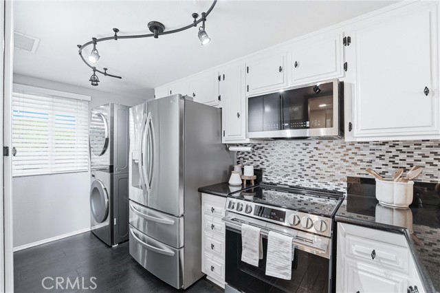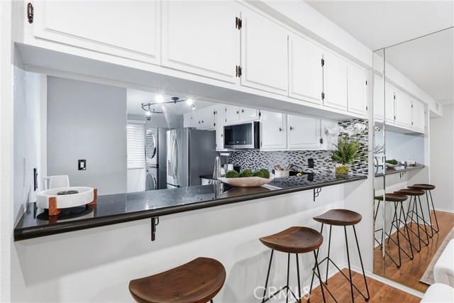 Come experience the charm and lifestyle of Whittier in this rare, turnkey single level end unit condo, situated on a historic tree lined street. Offering 1,364 sq. ft. this beautifully upgraded 3bed 2bath condo blends comfort, style, and convenience in one of Whittier’s most sought after locations just minutes from Whittier College with easy access to the 605, 5, 10, & 60 freeways. Step inside to an open and inviting floor plan filled with natural light and thoughtfully curated upgrades throughout. The living and dining areas has laminate flooring, cozy fireplace, plantation shutters, new tinted dual-pane sliding doors. Freshly painted with all new dimmable LED Halo recessed lighting, new receptacles new light switches, custom light fixtures and new ceiling fans for a modern, polished feel. The updated kitchen has new granite countertops, abundant cabinetry, hardware, stainless steel appliances, Bosch dishwasher, LG electric range w/built-in air fryer, conventional oven, new garbage disposal, and LG stackable washer/dryer. The spacious primary suite has floor-to-ceiling tinted dual-pane windows, direct access to the balcony with new energy-efficient sliding door, dual closets, new carpet, recessed lighting & new ceiling fan. The primary bathroom has new plumbing, step-in shower, new tile floor & fixtures. Secondary bedrooms are generously sized with large new windows, recessed lighting, and ample closet space. The secondary full bathroom includes a tub, tile flooring, new light fixture and hardware. Additional improvements include, a new 18 SEER 3-ton heat pump HVAC system, new electrical breaker panel, and a water heater five years old. The private patio features a sunshade, outdoor carpeting, and a secured storage closet. The front door is equipped with a Ring doorbell, keyless smart lock plus a Honeywell smart Wifi controlled thermostat. Located within the private gated Beverly Timbers community of only 17 units, residents enjoy subterranean tandem parking, elevator access, low HOA includes water, trash, common area maintenance, elevator service, intercom, and security system. Enjoy the vibrant Uptown Whittier lifestyle with an array of dining options from casual to upscale, boutique shopping, local car shows, farmers markets, hiking trails, dog parks, and multiple parks, lake recreation at Whittier Narrows. Located near Longfellow, Dexter, Whittier HS, Plymouth Christian, Broadoaks and the YMCA. This property may qualify for a $10,000 grant program.