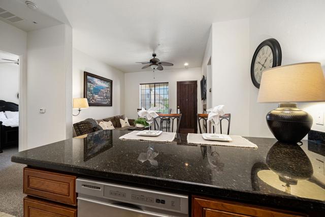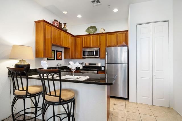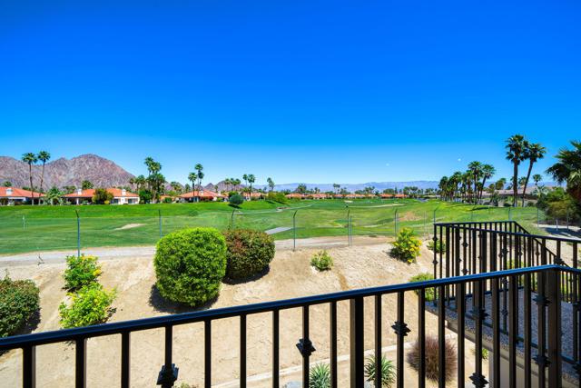 Location, Location, Location! This location doesnt come available often. Great 1031 exchange opportunity. Freshly painted furnished, top-floor 1BD/1BA condo overlooks the Dunes Course at the iconic La Quinta Resort and offers peaceful, private views on the quiet backside of the Embassy Suites. The interior features a comfortable family room, full kitchen, interior laundry, spacious bedroom with closet, and a full bath. Casitas Las Rosas offers low HOA dues and is within the City of La Quinta's Enterprise Zone, providing future short-term rental potential as permits continue to be issued. Prime location close to Old Town La Quinta's restaurants, shops, and amenities, plus easy access to hiking, biking, golf, pickleball, and tennis. Ideal for a 1031 exchange, and the seller is offering another additional condo for sale for an excellent chance to expand your real estate portfolio with two income producing rentals. Ready to experience the La Quinta lifestyle don't miss out on this opportunity.
