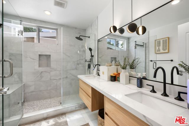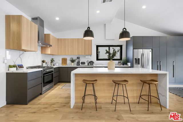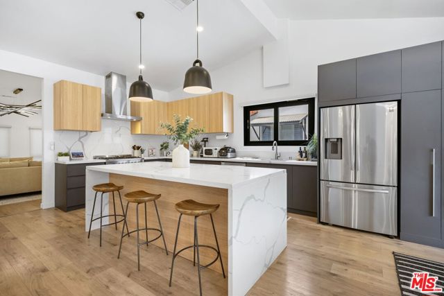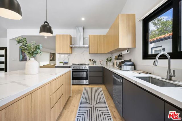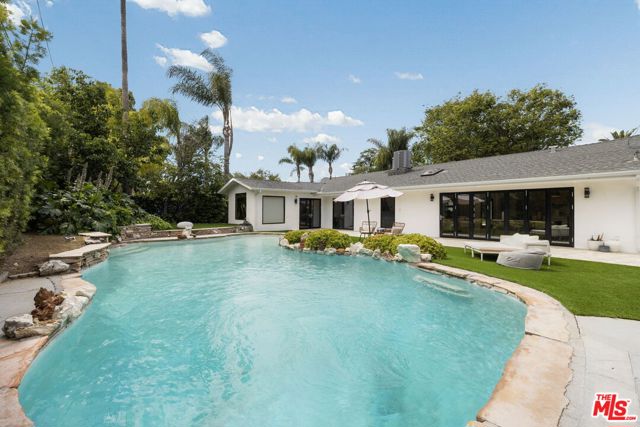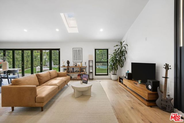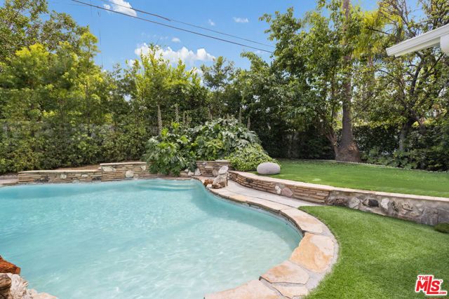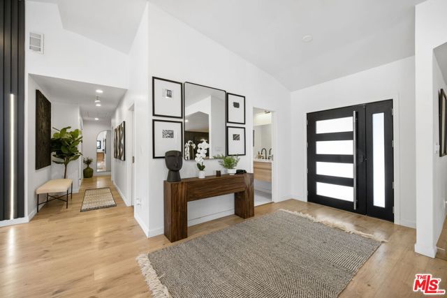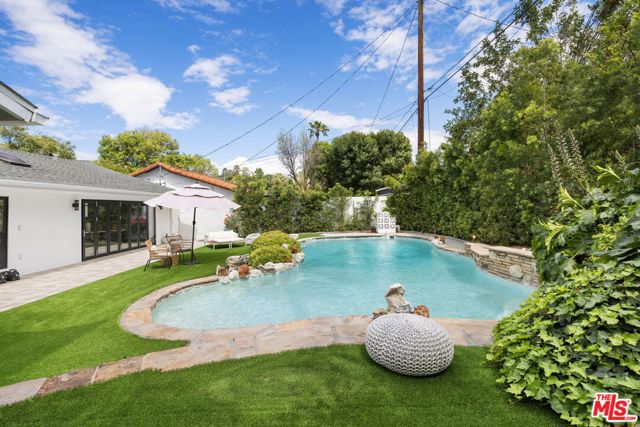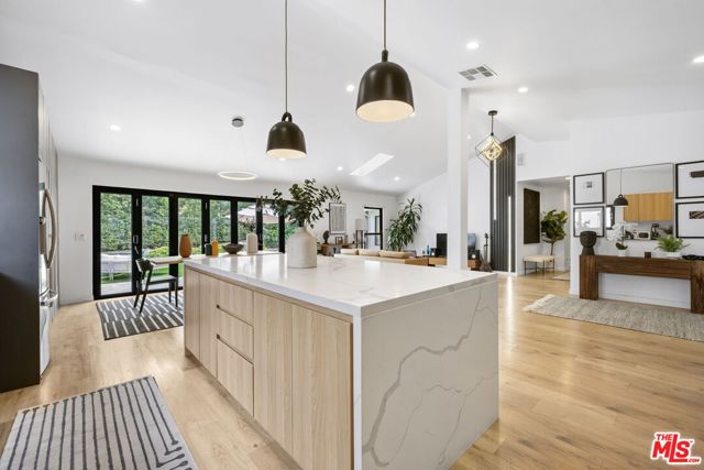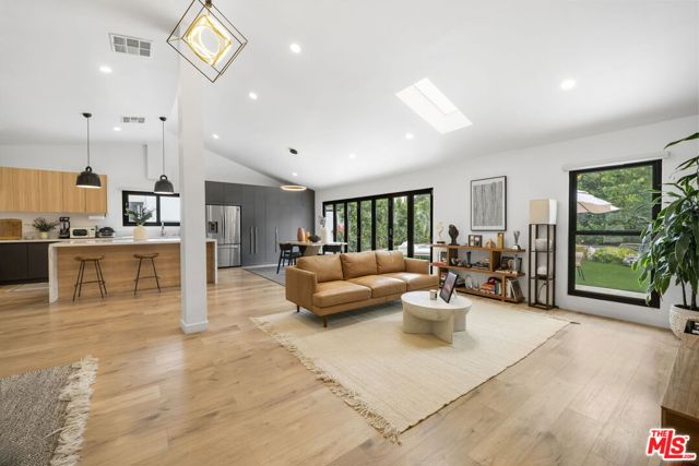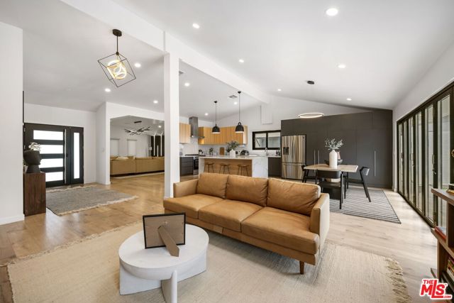 Thoughtfully reimagined, this fully remodeled single-story residence offers 4 bedrooms and 3.5 baths across more than 2,400 square feet of refined living space. Designed for modern living, the home showcases a contemporary open floor plan with expansive, light-filled interiors, highlighted by vaulted ceilings in the main living areas and two of the bedrooms, creating an airy and inviting atmosphere throughout. At the heart of the home, the chef's kitchen features a large center island with seating, abundant storage, and seamless flow into the dining and living spaces ideal for both everyday living and effortless entertaining. A dedicated family room/screening room provides the perfect setting for movie nights or relaxed gatherings. Folding glass doors open wide to the private backyard, creating a true indoor-outdoor lifestyle. The primary suite serves as a tranquil retreat, complete with a custom walk-in closet and beautifully appointed finishes. All bathrooms have been renovated with sleek, contemporary design and high-end materials, complementing the home's cohesive modern aesthetic. Step outside to a serene backyard oasis featuring a patio, water-efficient turf, and a sparkling pool, all designed with privacy and relaxation in mind. Six figures + worth of extensive upgrades have been thoughtfully invested throughout the propertyboth inside and outby the current owner, including designer window coverings, custom detail walls, mature landscaping, and upgraded drainage systems. Ideally located south of the Boulevard, this home offers close proximity to the best of Calabasas, including The Commons, top-tier dining, and premier shopping. Situated within the award-winning and highly sought-after Calabash / Hale / El Camino school district, this is a rare opportunity to own a turnkey property in one of Woodland Hills' most desirable neighborhoods.