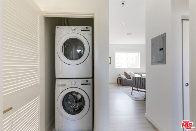 A newly constructed, upper level 3-bedroom, 3-bath residence in the heart of Echo Park, offering a refined blend of modern design, warm finishes, and views of Downtown Los Angeles and surrounding treetops. Designed with a clean, contemporary aesthetic, the home is filled with natural light, enhanced by expansive windows and thoughtful orientation. The main living spaces flow effortlessly, creating a layout that feels both relaxed and elevated, ideal for everything from quiet mornings to hosting friends. The kitchen strikes a perfect balance of style and function, featuring stone surfaces, ample cabinetry, and warm, curated details that make it as inviting as it is practical. Bathrooms continue that same thoughtful approach, with textured tile, clean lines, and a polished, modern finish. Three well-proportioned bedrooms offer privacy and flexibility, including two primary suites, each with its own bathroom. Ample closet space is thoughtfully integrated, while the additional bedroom offers versatility for guests, a home office, or creative use. Enjoy fresh air from the private balcony off the living room, while a private side grassy area provides additional space, ideal for storage, flexible use, or furry companions. Additional features include in-unit washer and dryer, HVAC, paid-off solar panels, and two tandem covered parking spaces. Ideally located just around the corner from Vinovore, Be U, Doto, and Cafecito Organico, and moments from both Silver Lake and Echo Park, this home offers a lifestyle that feels both vibrant and effortless.