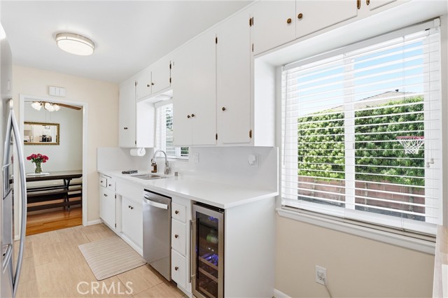 Welcome to 15434 Woodcrest Drive! This charming and well-maintained single family home is nestled in a highly desirable Whittier neighborhood. This inviting home offers 3 bedrooms, 1.5 bathrooms, and 1,143 square feet of thoughtfully designed living space, all situated on a generous 6,311 square foot lot. From the moment you arrive, you’ll appreciate the home’s beautiful curb appeal, enhanced by mature landscaping and a long concrete driveway leading to a detached two-car garage positioned at the rear of the property. Inside, the home is filled with great natural light and features a comfortable and functional layout ideal for everyday living. The spacious living room is highlighted by a cozy gas fireplace and flows seamlessly into the dining area, which showcases built-in cabinetry and shelving for added character and storage. A large sliding glass door off the living and dining rooms opens to the backyard, creating a perfect indoor-outdoor connection for entertaining. The kitchen is well-appointed with white wood cabinetry, quartz countertops, and a charming eat-in breakfast nook. Both the refrigerator and wine refrigerator are included, offering added convenience. Adjacent to the kitchen, the laundry room provides direct access to the side yard and driveway, along with a conveniently located powder room. The main bathroom has been tastefully remodeled, and all bedrooms are equipped with ceiling fans for added comfort. Additional upgrades include dual-pane windows throughout the home, enhancing energy efficiency and comfort year-round. Step outside to a spacious backyard featuring a large covered patio, perfect for outdoor dining or relaxing while overlooking the grassy yard area. The front and back yards are nicely landscaped, offering both beauty and functionality. Ideally located near Scott Avenue Elementary School and Granada Middle School, and zoned for the highly regarded La Serna High School, this home is also just minutes from Whittwood Town Center, offering a variety of shopping, dining, and entertainment options. Combining comfort, charm, and convenience, this is a wonderful opportunity to own a lovely home in a sought-after community.