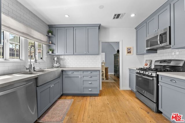 Step into timeless Spanish charm, thoughtfully updated for modern living, in this beautiful Mid-City Heights residence at 2030 S Redondo Blvd. This 2-bedroom, 1-bath home features a spacious living room, formal dining area, and a generously sized kitchen, blending classic architectural character with thoughtful improvements throughout. The bedrooms and bath are set down a hallway, providing added privacy and separation from the main living spaces. Inside, you'll find engineered oak flooring, updated interior doors and hardware, creating a clean and polished aesthetic. The home features updated heating and cooling, modernized electrical, and upgraded lighting inside and out, enhancing both comfort and functionality. The kitchen features custom cabinetry, an improved layout, and a convenient in-kitchen laundry cabinet, offering both style and everyday functionality. The bathroom was expanded and fully renovated, providing a more spacious and comfortable design. French doors open to the backyard, creating a seamless indoor-outdoor flow. The exterior has been thoughtfully improved over time with added fencing and gates, privacy hedging, irrigation, and refreshed landscaping in both the front and rear yards. The backyard and driveway enhancements offer a greater sense of privacy and usability. Additional improvements include a newer flat roof on the home and garage (2023), tile roof updates, and a recently repainted exterior. The garage has also been upgraded with drywall and built-in shelving for added storage. Ideally located in vibrant Mid-City, this home offers convenient access to some of Los Angeles' most desirable neighborhoods, including Culver City and West Adams, and is just a short drive to Hancock Park and the charming shops and dining of Larchmont Village. Enjoy nearby cafes, boutiques, and local hotspots along Pico and La Brea, placing you right in the center of it all. This is a rare opportunity to own a classic Spanish revival with thoughtful updates in one of LA's most centrally located communities.