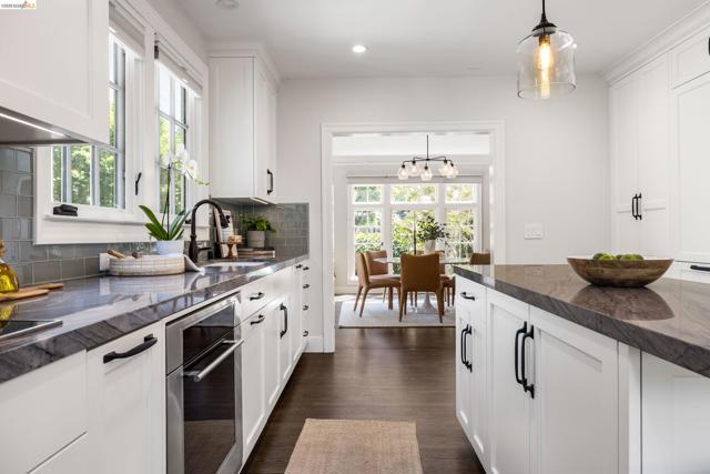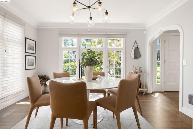 Tucked along a quaint street in Oakland's beloved Crocker Highlands, 835 Grosvenor Place feels less like a house you simply enter into and more like a story you immerse yourself in and continue. With five bedrooms and three and a half baths, this recently remodeled home balances its classic traditional character with modern ease. Mornings begin with sunlight spilling across warm hardwood floors, drifting through generous windows and settling into each corner of the home. The main level unfolds with an easy, welcoming rhythm: a spacious living room anchored by a classic fireplace invites conversation, while the formal dining room with built-in cabinetry is made for lingering dinners that turn into evenings. Just beyond, an updated kitchen opens effortlessly to a rear deck where the indoors blend into a level backyard, ready for garden beds, weekend play, or quiet moments under open sky. A dedicated office offers a place to focus, tucked just enough away from the day’s flow. Upstairs, three bedrooms and two baths provide space to unwind, including a beautifully remodeled primary suite complete with ample closet and a thoughtfully updated bath. Downstairs, two additional bedrooms, a full bath, and a wet bar create an ideal setting for guests, extended family, home office, play space, or gym. With its timeless character, flexible floor plan, and prime location, 835 Grosvenor Place is a home to grow into and one to truly call your own.