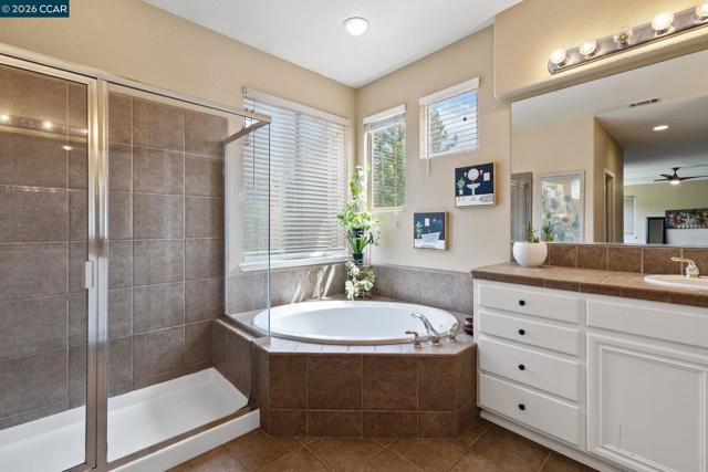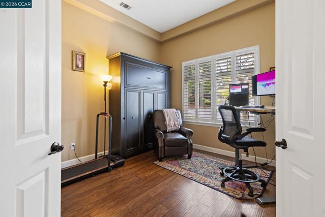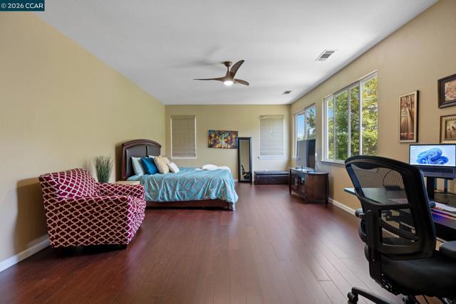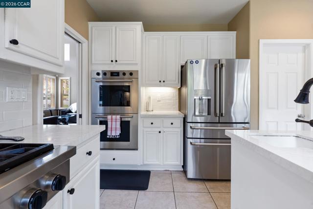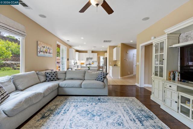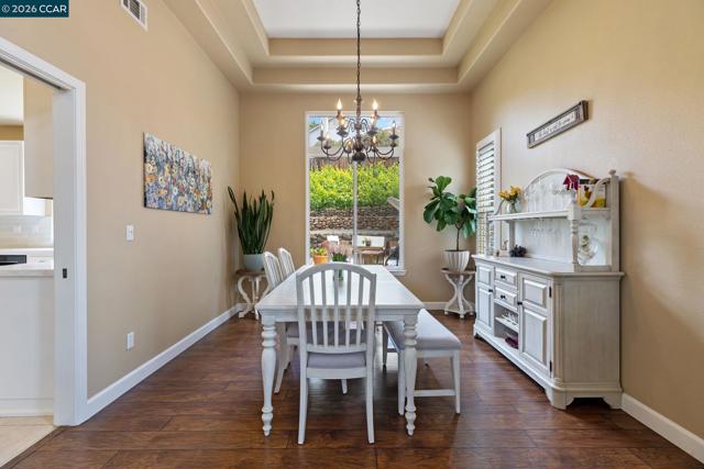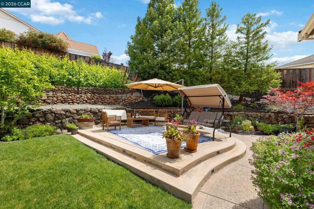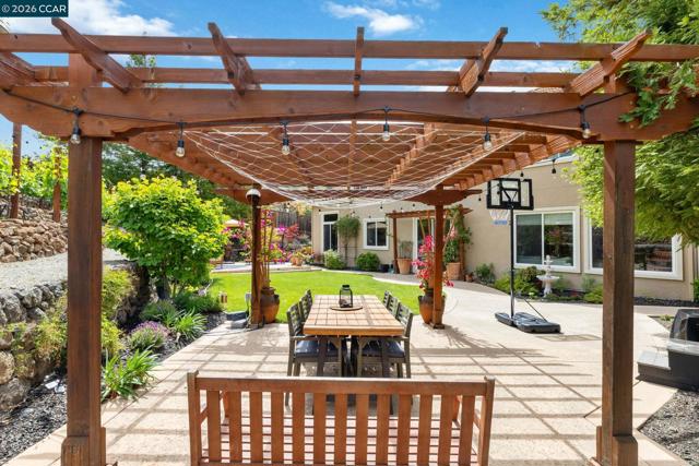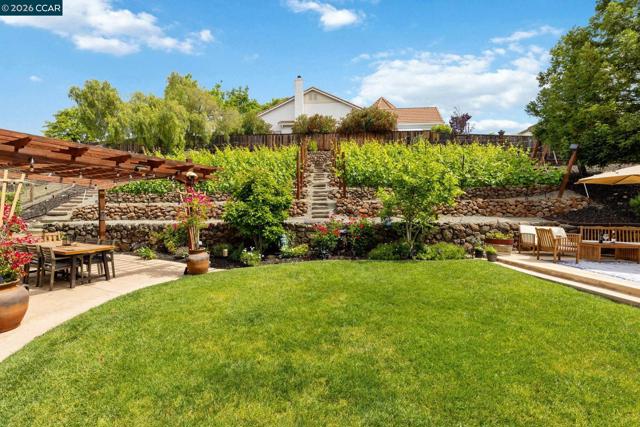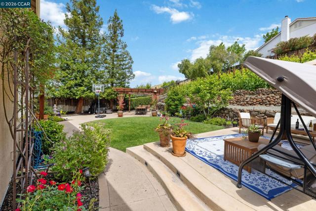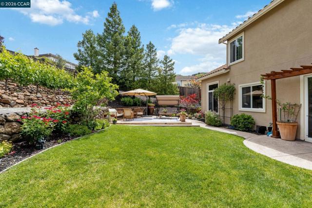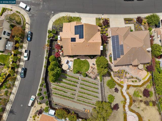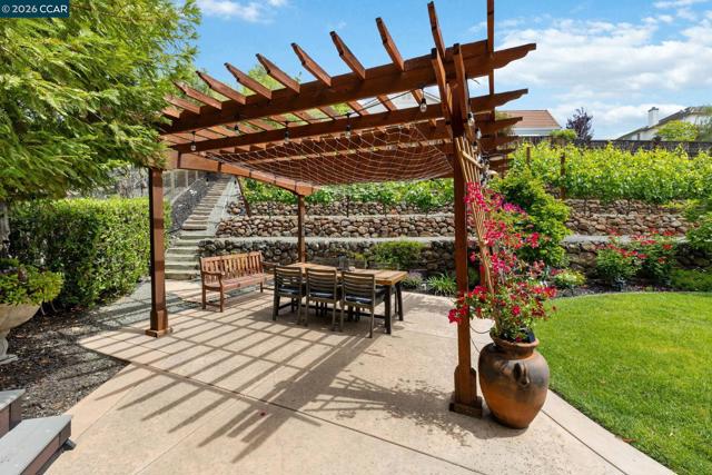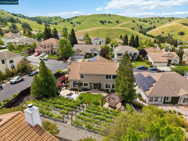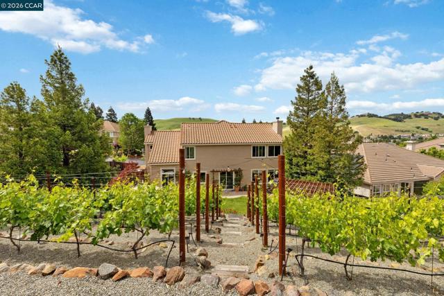 Experience refined living in the prestigious Crystyl Ranch community with this expansive 3,240-square-foot residence. Thoughtfully designed, this home offers 5 bedrooms and 3.5 bathrooms, providing a spacious and versatile layout for comfortable living. Upon entry, you’re welcomed by a grand foyer featuring a luxurious spiral staircase, soaring ceilings, and an abundance of natural light. The elegant formal living and dining rooms create the perfect setting for hosting gatherings and special occasions. The home seamlessly flows into a beautifully updated kitchen, complete with a walk-in pantry, oversized island, upgraded cabinetry, sleek countertops, and stainless steel appliances. The kitchen opens to a generous family room with a cozy fireplace—ideal for relaxing evenings at home. The main level also includes a private junior suite with French doors, Murphy wall bed and its own en-suite bathroom, a spacious laundry room, and a convenient guest half bath. Upstairs, you’ll be welcomed by a spacious and elegant primary suite featuring two large walk-in closets with upgraded cabinetry. The suite flows into your own private, spa-inspired bathroom, designed as a serene retreat for relaxation. The upper level also includes three additional well-sized bedrooms and a beautifully updated hall bathroom, offering comfort and convenience for family and guests alike. Step outside into your own private vineyard, producing grapes for your enjoyment and creating a truly unique outdoor experience. The backyard features a rustic vineyard-inspired dining area and a large sitting space, perfect for entertaining or unwinding with guests. A separate side yard offers a charming garden setting—ideal for peaceful afternoons or enjoying a quiet cup of tea. Home provides low energy bills due to Solar w/ back up battery & Tesla Car Charger. Enjoy a lifestyle of convenience and recreation with the Crystyl Ranch HOA amenities, including a clubhouse, swimming pool, and tennis courts. Nature enthusiasts will appreciate the proximity to Lime Ridge Open Space for hiking and biking. Residents benefit from being part of the highly-regarded Mount Diablo Unified School District that features Northgate High School. Commuting is seamless with easy access to 680 freeway, Concord BART station that provides efficient regional connectivity. Premier everyday shopping and dining within The Veranda and Walnut Creek Shopping Center are easily accessible for all your needs.