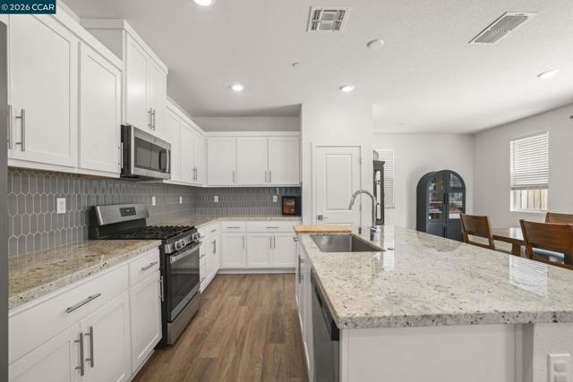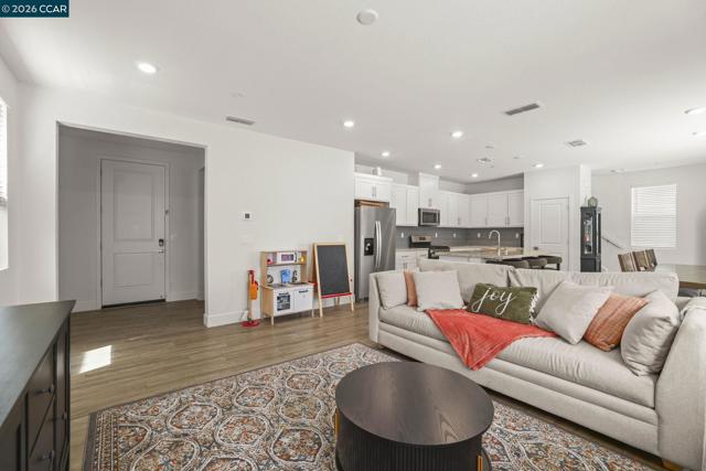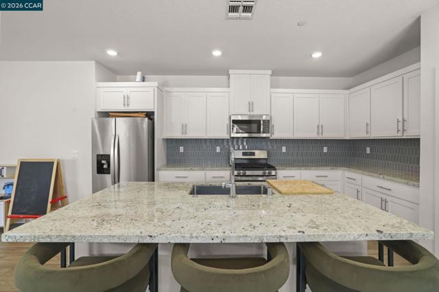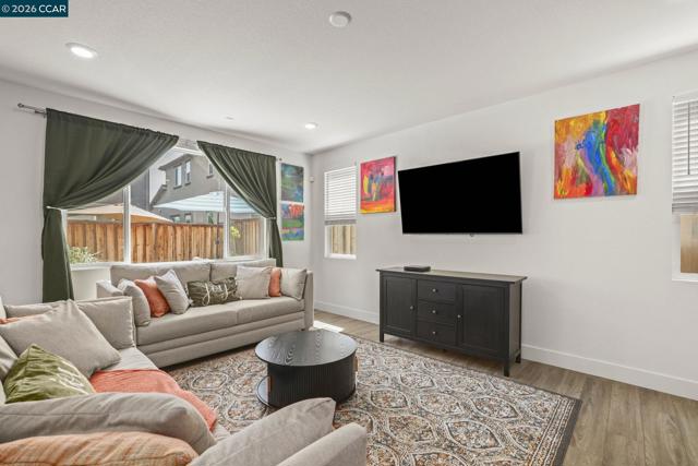 Welcome to 122 Granite Way, built in 2022, where style, space, and natural light come together beautifully. . From the moment you step inside, you’re greeted by soaring ceilings and an abundance of sunlight that fills the open entryway. The main level features a seamless open-concept design, perfect for modern living and entertaining. Enjoy a spacious great room that flows effortlessly into a designer kitchen complete with a large island, plus a dedicated dining area. Sliding glass doors provide easy access to the sunny backyard, ideal for indoor-outdoor living. Upstairs, you’ll find three generously sized bedrooms, including a relaxing primary suite with its own private bathroom. An additional full hall bath and a versatile bonus alcove offer the perfect space for a home office, play area, or cozy reading nook. Additional highlights include an attached two-car garage and energy-efficient solar panels. Conveniently located near Emerson Ranch Park, the lagoon, and scenic walking trails, this move-in-ready home offers both comfort and lifestyle in a desirable Oakley neighborhood.