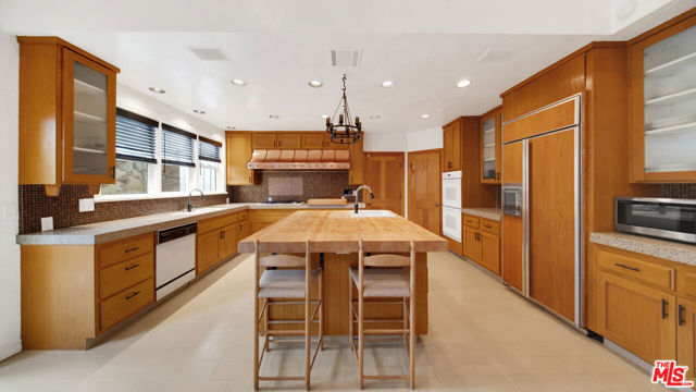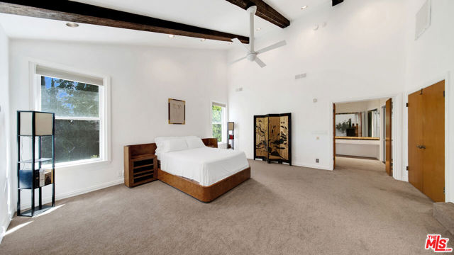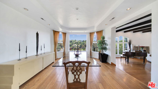 Tucked away on a quiet cul-de-sac in one of Beverly Hills most prestigious enclaves, this inviting estate offers a true sense of retreat, where soft canyon vistas and twinkling city lights create a serene, ever-evolving backdrop. Just moments from the energy of Los Angeles, yet perfectly removed, the home embodies a lifestyle of ease, privacy, and understated sophistication. A warm and inviting sense of arrival unfolds as you step inside, where a thoughtfully designed floor plan balances refined scale with relaxed elegance. Soaring ceilings in the main living areas and primary suite create an airy, light filled ambiance, while walls of glass seamlessly invite the outdoors in, framing tranquil views from nearly every vantage point. Designed for both effortless daily living and elevated entertaining, the residence offers six bedrooms and 6.5 bathrooms, including a serene primary retreat complete with a sitting area or office, a spa-inspired bath, and a private rooftop deck with fireplace and sweeping canyon views an intimate sanctuary to unwind! The lower level features a private steam bath, along with a dedicated gym or theater space, creating a resort caliber experience within. The expansive chef's kitchen, anchored by an oversized island, ideal for entertaining, flows seamlessly into the living and dining spaces, creating a natural gathering place that feels both intimate and open, all thoughtfully oriented toward the home's breathtaking views. Outdoors, a resort-inspired pool and spa create a secluded oasis above the landscape, ideal for sun-soaked afternoons and relaxed evenings under the stars. A private wine cellar adds a refined touch for collectors, while a separate, discreet entrance leads to the lower level featuring a wine cellar, gym and/or theater, and a luxe bathroom with steam shower offering exceptional flexibility for a guest suite, ADU, or private retreat. Defined by its sense of calm, scale, and striking natural beauty, this residence presents a rare opportunity to experience refined living with an effortless, resort like feel.