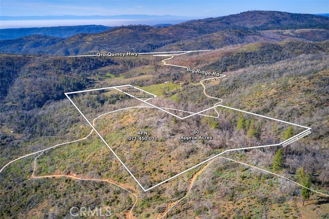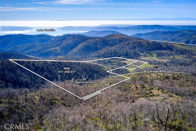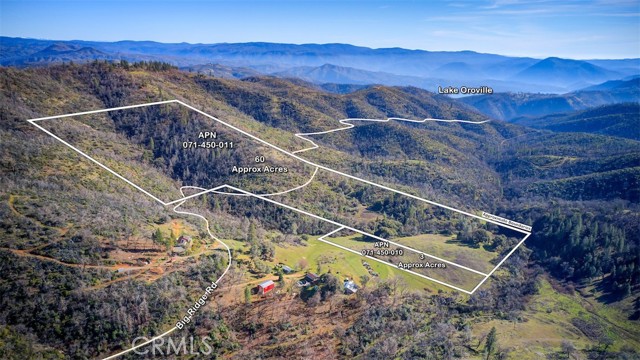 OWNER MAY CARRY: Just above the foothills surrounding Lake Oroville lies this expansive 63 acre property offering a rare blend of size, elevation, privacy, and diverse mountainous terrain. The land consists of two legal parcels; a 60-acre tract plus an additional 3 acre parcel providing flexibility for future use or long term planning.