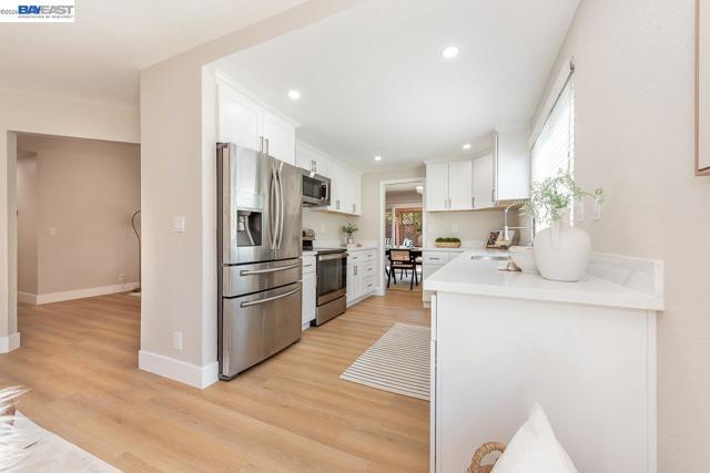A rare opportunity to own this ranch-style home in one of the most sought-after neighborhoods. Located on a premium corner lot with charming curb appeal, this single level home has a huge wrap-around yard providing endless indoor/outdoor living. Built by Ponderosa, the Carmel 2 model offers 4 bedrooms, 2 baths and 1,703 sqft of living space. Walk into a large formal living room with soaring vaulted ceilings. The cozy family room opens to the newly remodeled kitchen with quartz counters, stainless steel appliances and new cabinets. Spacious bedrooms and newly remodeled bathrooms. This expansive 7,000 sqft lot offers lush and mature landscaping, manicured lawns front and back, large side yards, private patios and covered deck perfect to relax and unwind. Upgraded with paid solar, new LVP flooring throughout, new interior and exterior paint, water filter system and more! A short walk to award-winning Pioneer Elementary. Prime location with easy access to I-880/84/92, BART, Coyote Hills, Alameda Creek Trail, Union Landing and major employers of the Bay Area.