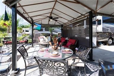 Resort living at its best! Ideally located on the 11th tee box of Rancho California RV Resort, this exceptional property offers a relaxing place to call home with tranquil pond and fountain views, beautiful mountain scenery, and a peaceful setting designed for everyday enjoyment. The main clubhouse is just around the corner, providing convenient access to many of the resort’s premier amenities. This site is fully equipped for comfortable outdoor living under a newer canvas roof and includes a refrigerator, freezer, sink, dishwasher, oven, and newer washer and dryer. Furniture is negotiable, making this a move-in ready opportunity. Located within the highly desirable Rancho California RV Resort, a gated and 24/7 guard-controlled community offering resort-style amenities including a 14-hole executive golf course (free for owners with unlimited use), 5 pools and multiple jacuzzi areas, tennis courts, pickleball courts, dog park, horseshoe lawn, laundry facilities, hiking trails, clubhouse, on-site restaurant, and market. HOA includes water, sewer, trash, and common area maintenance. You can enjoy full-time living, vacation use, or rental income potential in this vibrant all-ages community. Peaceful resort living just minutes from Temecula Wine Country. Come experience this hidden gem for yourself. Financing Available....