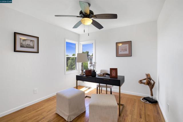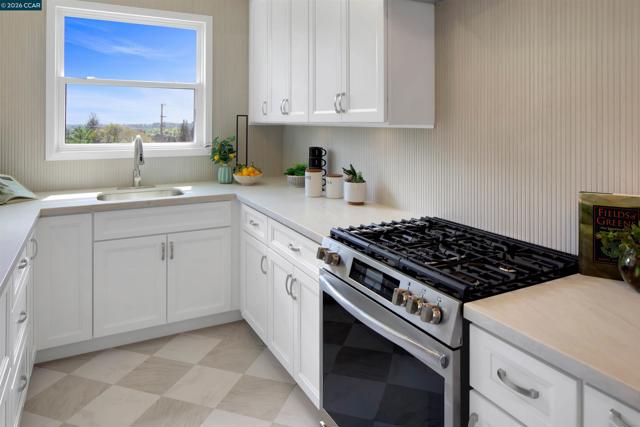 Spectacular views take center stage in this beautifully renovated Castro Valley home, filled with natural light and thoughtfully designed for modern living. The bright and airy interior showcases a brand-new kitchen remodel featuring stylish cabinetry, sleek countertops, a new sink and faucet and new appliances. It's complemented by a fully renovated bathroom. The spacious living room is ideal for relaxing or hosting gatherings. Hardwood floors and large picture windows grace the living room and the three generously sized bedrooms. Ample closet space and organizers provide plenty of storage for everyday necessities. The garage is well-appointed with a washer and dryer, a reglazed cast iron utility sink, custom shelving, a brand-new garage door with privacy glass to allow sunlight to shine in and a convenient Wi-Fi-enabled electric opener. The expansive backyard is a true highlight—perfect for creating memorable moments, play, or simply enjoying beautiful sunsets. A large storage shed adds versatility and makes gardening effortless. The mature productive lemon tree is not only beautiful but provides lovely fruit to enjoy in your favorite beverage. Outstanding potential to expand the living space—whether through an addition, ADU, or a stunning view deck—offers exceptional flexibility and long-term value. Conveniently located near top-rated Castro Valley schools, BART, freeways, shopping and dining. Enjoy local events, farmers' market, cultural centers and Adobe Art Center and Gallery and the proximity to Lake Chabot Regional Park for hiking, fishing, and family gatherings. A rare opportunity to own a move-in ready home with views, brand-new upgrades, and room to grow—this one won’t last.