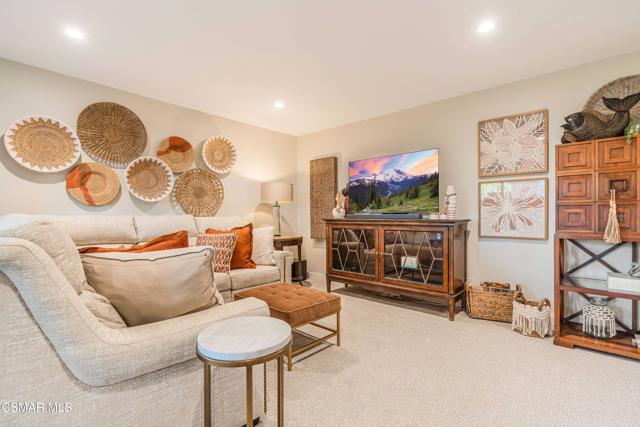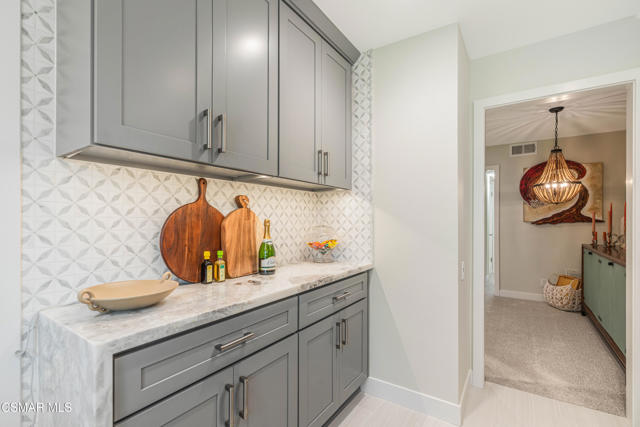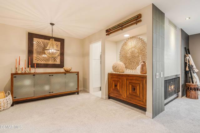 This is an amazing home! Thousands of dollars spent on top of the line upgrades! Located in prestigious Westlake Village, this tastefully, TOTALLY REMODELED, one bedroom CONDO is STUNNING! Located on the GROUND FLOOR, every square inch of this unit has been updated. BRAND NEW AC, freshly painted neutral interior with new carpet in the primary and family rooms, and recessed lighting through-out. The KITCHEN is a delight with newly added 'soft close' Koville cabinetry (not found in original units), marble countertops with waterfall, porcelain tile flooring, and new kitchen window. ALL NEW STAINLESS STEEL KitchenAid appliance package with a 5 burner range, new pantry door, cast iron sink, and microwave with outside venting, and full tile wall for easy cleaning. The beautifully REMODELED BATHROOM has DUAL VANITIES WITH ADDED STORAGE, MARBLE COUNTERTOPS, Duravit sinks, porcelain tile floor, custom designer lighting fixtures with dimmers, new window, new fan, dual medicine cabinets, and new designer mirrors. The frameless shower enclosure is adorned in custom marble from floor to ceiling and there is a motion sensor exhaust fan. Also, a TOTO toilet w/self cleaning flush and designer glass and nickel towel bars. The cozy dining room has a custom light fixture and is open to the family room. The oversized primary bedroom has a new custom MINKA ceiling fan with remote, tall ceilings with recessed lighting, and mirrored closet doors. The lovely family room has a beautiful custom tile wall with FIREPLACE. Open the sliding doors in the family room onto your outdoor PRIVATE ENCLOSED PATIO, which expands your living area and you can sit and enjoy the privacy. Additionally, there is a community POOL and SPA, green belts, and it's close to shops, dining, golf course, (across the street), Four Seasons and Westlake Village Inn! GREAT LOCATION! The owners have spent many thousands of dollars on this unit, it's not one that has just had a slap of paint! YOU WILL NOT FIND ANOTHER UNIT AS BEAUTIFUL AS THIS!