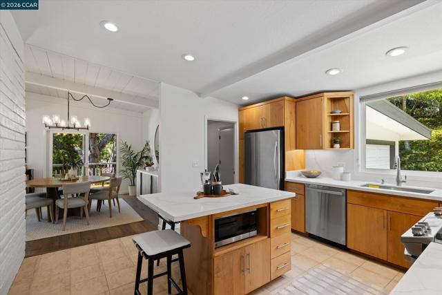 Tucked at the end of a cul-de-sac in Orinda, this 4-bedroom, 3-bath home offers a great layout, privacy and proximity to downtown. The main level has floor-to-ceiling windows and hardwood floors with an open plan layout from the kitchen to living and dining areas. The kitchen features new quartz countertops and stainless appliances. On the same level are 3 bedrooms and 2 bathrooms, including the primary suite. Downstairs adds flexibility with a separate family room, an additional bedroom and full bath -- ideal for guests, office space, or extended family. There's also a dedicated laundry room and a 2-car attached garage. Set on over a third of an acre, there's a spacious Ipe deck on the main level (perfect for enjoying sunset views), with a flat turf area and room to play throughout the fully-fenced yard. The location, less than a mile from downtown Orinda, allows easy commute access to Highway 24 and BART along with restaurants, coffee shops and the famous Orinda Theater. Of course, it all comes with Orinda's award-winning K-12 public schools.