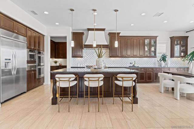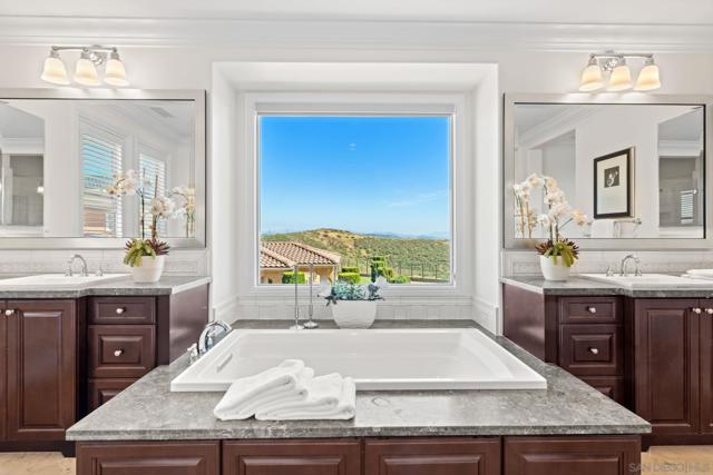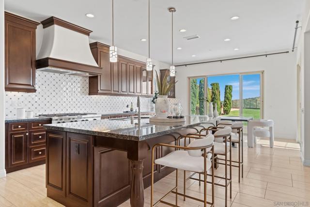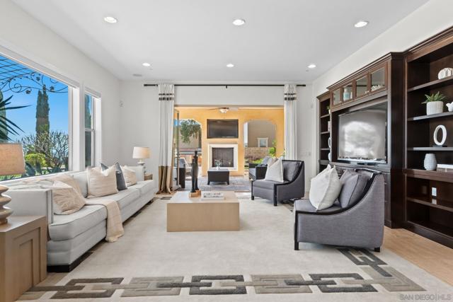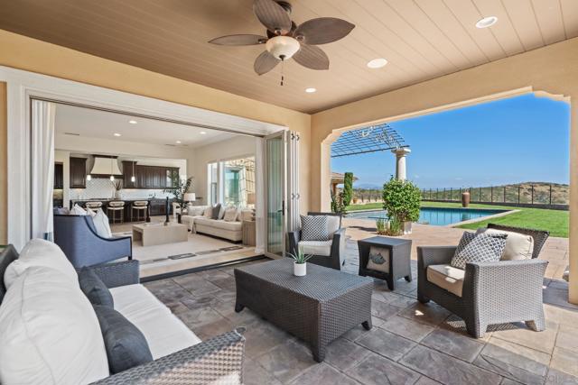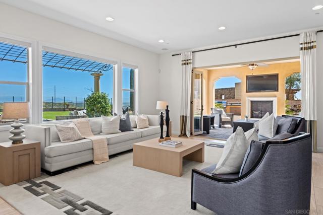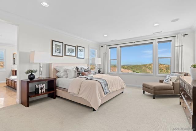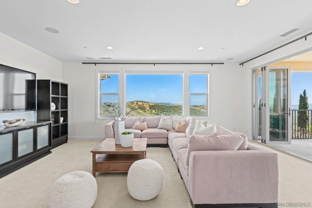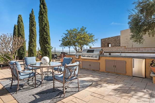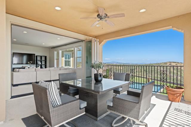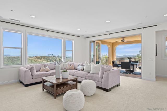 Set on a quiet cul-de-sac on one of the largest and most exceptional elevated view lots in all of Scripps Ranch, spanning over 1/2 acre, this premier Stonebridge Estates home showcases SWEEPING UNOBSTRUCTED PRESERVE VIEWS, offering a high level of privacy and openness seldom found in the area. Featuring 5 bedrooms & 4.5 baths in the main residence, plus a detached guest casita w/ full bath & an attached 3-car garage, this stunning property is designed for true resort-style living. The backyard features a beautifully designed heated pool & spa, built-in BBQ w/ dedicated gas line & refrigerator, fire pit, & a covered loggia w/ outdoor fireplace & TV, along w/ a vineyard setting & mature fruit trees. The main house offers an open floor plan w/ soaring ceilings & seamless indoor-outdoor connection, highlighted by expansive California bi-fold doors. The chef's kitchen features an oversized island w/ counter seating, extensive cabinetry, and flows into the inviting living room, w/ a tucked-away butler’s pantry area w/ additional refrigerator & walk-in pantry. Additional highlights include a formal dining room, main-level bedroom w/ ensuite bath, office, & an upstairs loft/great room positioned to capture the views, w/ a large covered balcony. The primary suite is a private retreat, featuring a spacious bath w/ a large soaking tub, enclosed shower, and dual vanities. The casita includes a living/sleeping area, kitchenette, walk-in closet, full bath, & covered porch. This is a rare opportunity to own one of the most significant view properties in Scripps Ranch.