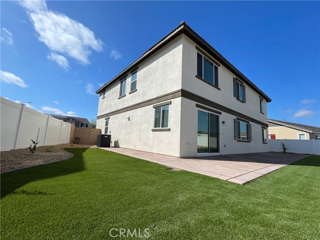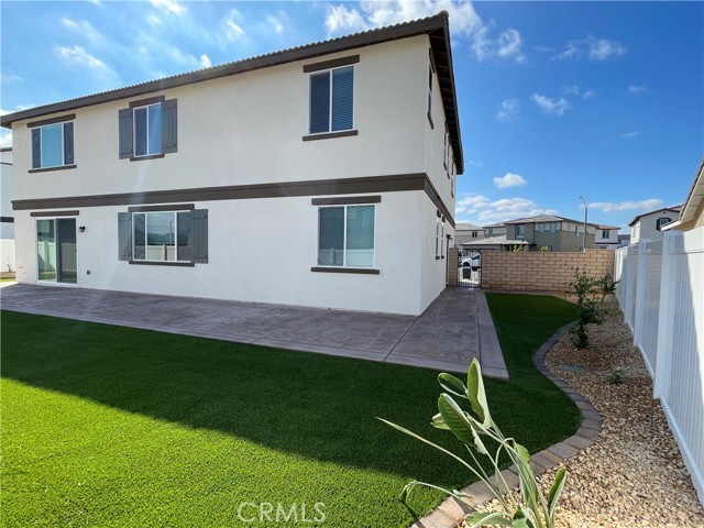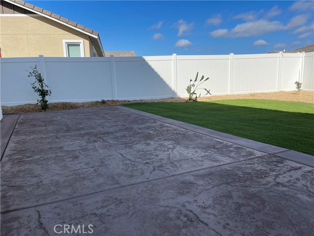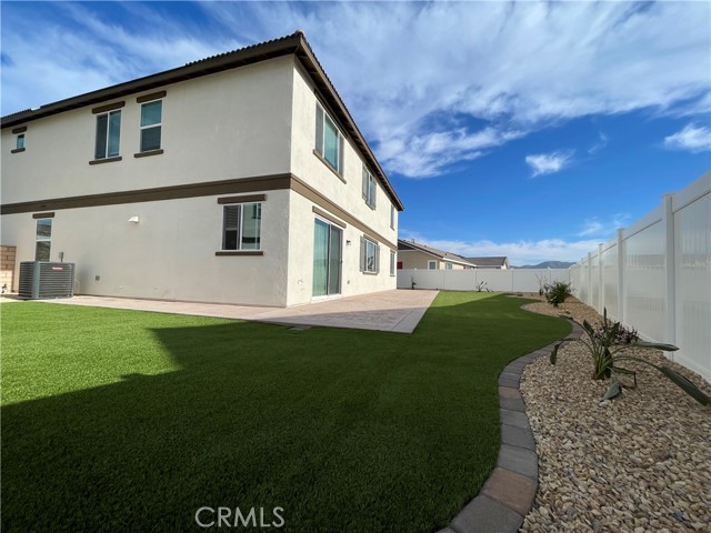 Stunning like-new 2023 Beazer home in the coveted Boulder Creek community of Wildomar, on a quiet cul-de-sac just blocks from Murrieta. Skip the dirt backyard of new construction — this one's already a finished outdoor oasis with a wrap-around stamped colored-concrete patio, lush artificial turf, trees and flowers on automatic drip irrigation. Builder-designated RV-eligible lot with extra-width side yard and wide curb for ample parking.