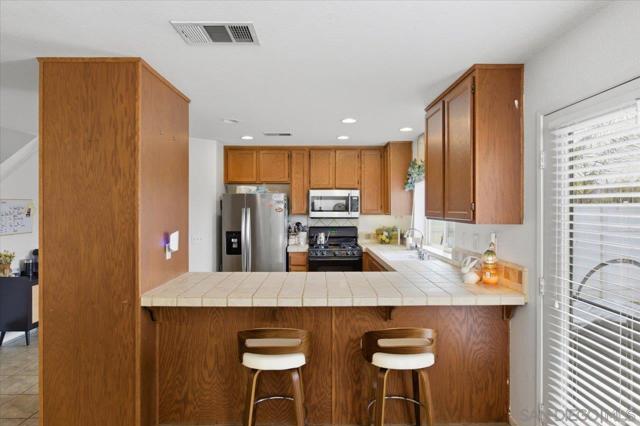 This adorable home is located in a quaint neighborhood in South Escondido with convenient access to freeways and nearby shopping. This home offers a functional layout with very large bedrooms, 2 bathrooms upstairs and a half bath downstairs is suited for first time buyers or those looking to downsize. The backyard features recently added turf and opens to a nature preserve, providing open views and added privacy that feels like an extension of the yard. Natural gas for BBQ has been plumbed. Well located with a balance of everyday convenience and a peaceful setting