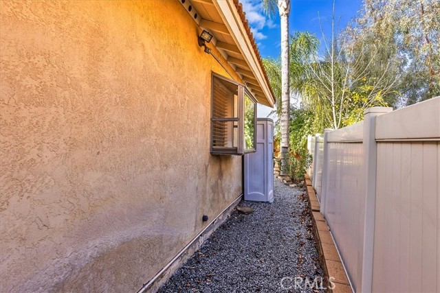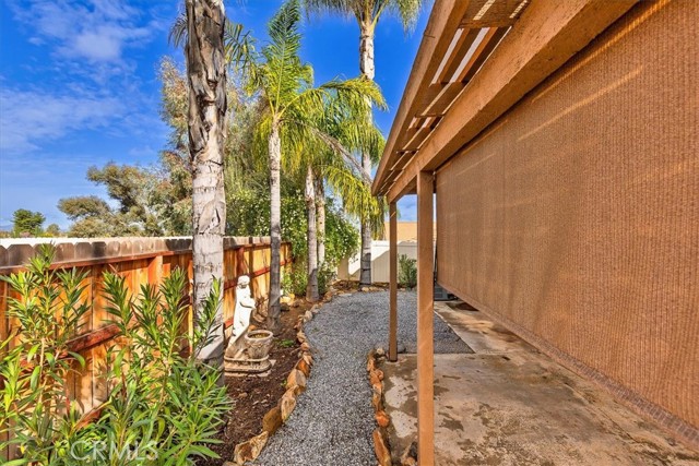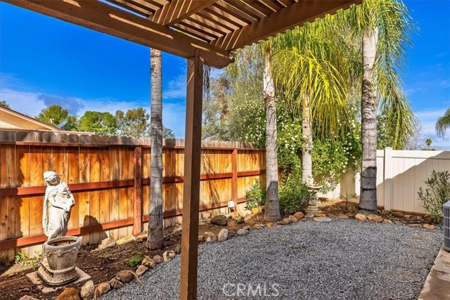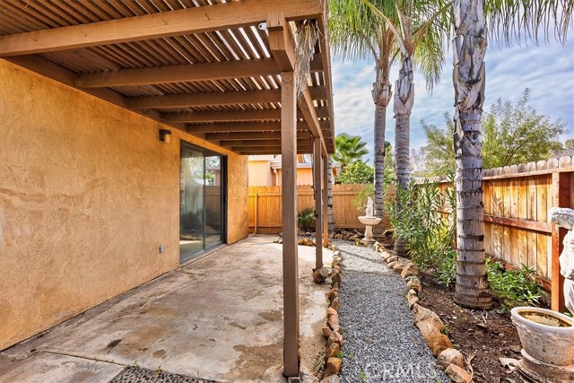 Welcome to the desirable 55+ community of Hermosa in Menifee! This charming single-story detached home sits on a rare elevated lot, allowing for an added level of privacy in this well-established community. Featuring 2 bedrooms and 2 bathrooms, the home offers an open, airy, and highly functional floor plan with tile flooring throughout, providing both style and easy maintenance. Step into the spacious living and dining room combination, where vaulted ceilings and abundant natural light create a bright and inviting atmosphere. The kitchen offers generous cabinet space and a charming atrium window above the sink, bringing in additional light and character. Just off the kitchen, the indoor laundry area includes a washer and dryer along with ample overhead storage. From the laundry area, enjoy direct access to the private backyard—perfect for relaxing or entertaining under the covered patio. The primary suite features vaulted ceilings, dual sinks and vanities, and a large sliding door with direct backyard access, while the secondary bedroom and full hall bath offer comfortable accommodations for guests. Additional highlights include an over-sized single-car garage with a roll-up door and automatic opener, low property taxes, and a very low annual HOA—making this home an exceptional value. Ideally located just a few minutes from the 215 Freeway and close to golf courses, parks, shopping, hospitals, and everyday conveniences, this home offers the perfect blend of comfort, convenience, and low-maintenance living in a welcoming 55+ community.