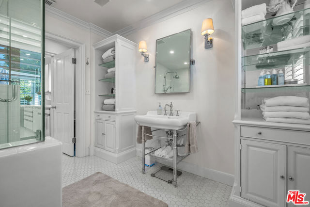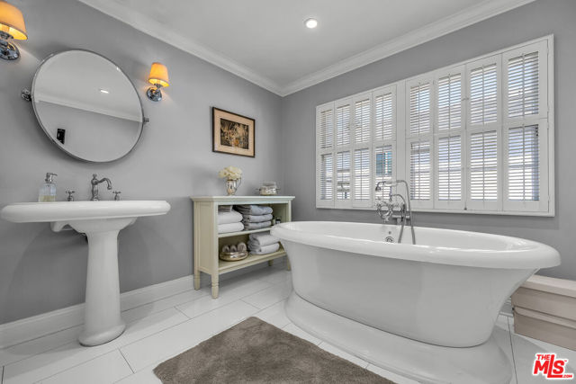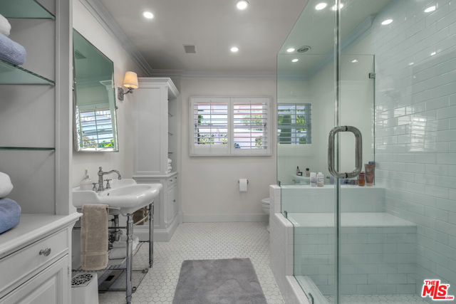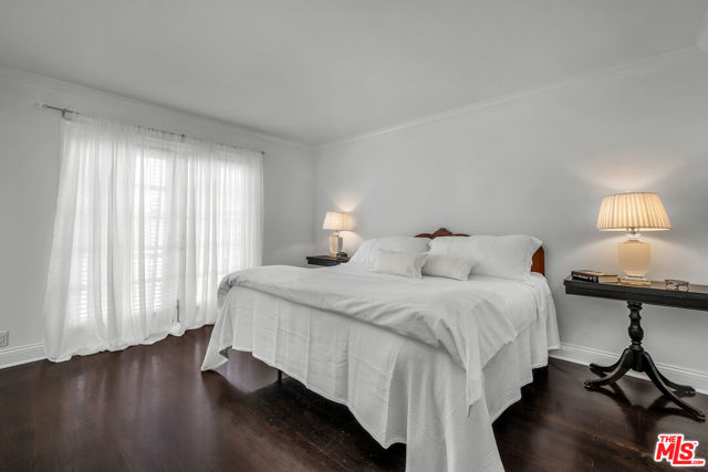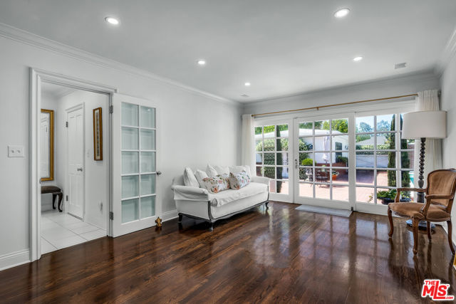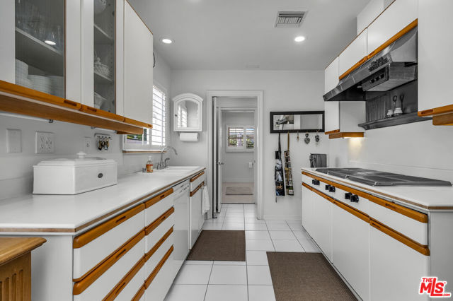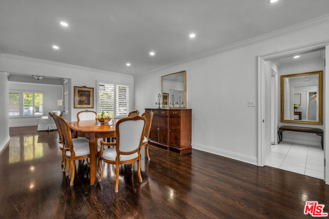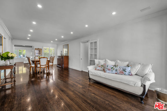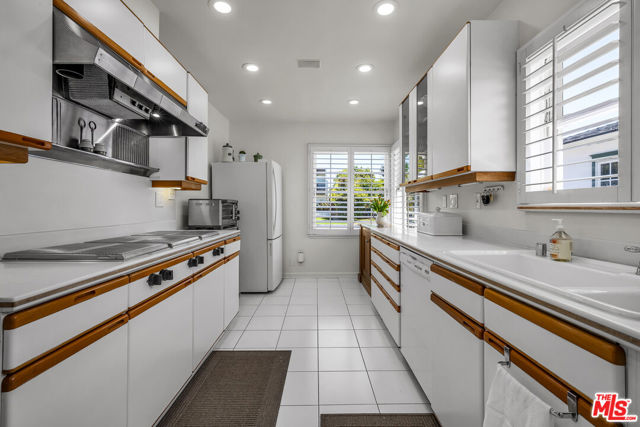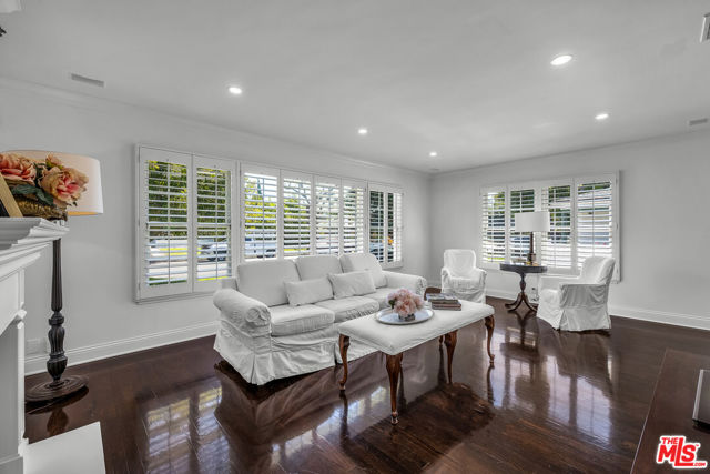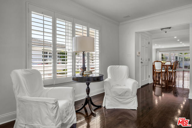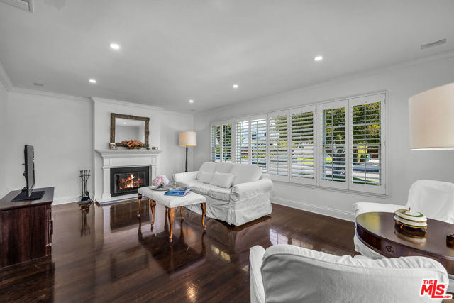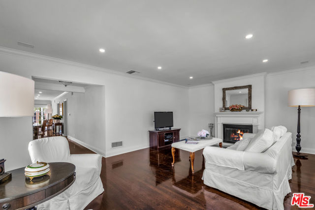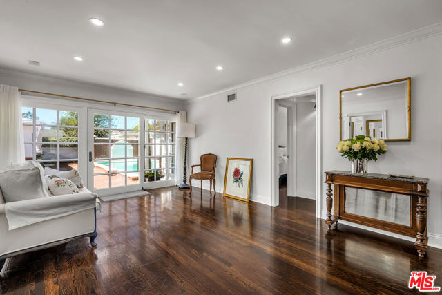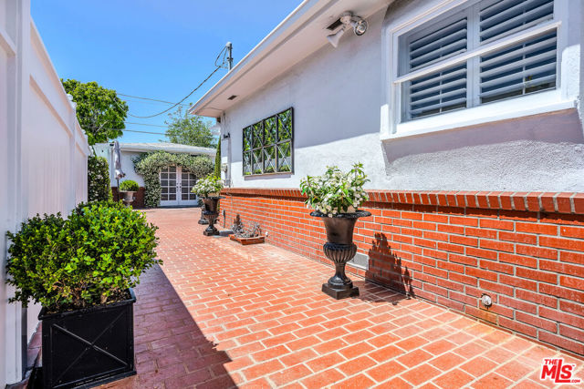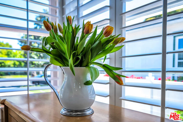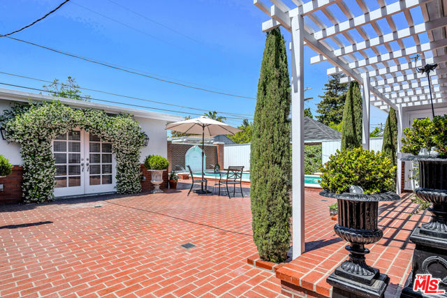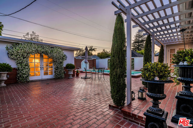 This two bedroom two bath beauty is flooded with light and offers perfect indoor/outdoor living. The spacious living room, overlooking the front yard, has a fireplace and white oak floors. Matching white oak flooring flows throughout, leading to a generous dining room and open den, ideal for large dinner parties! Both spa-inspired bathrooms have been tastefully remodeled with Perrin & Rowe fixtures and elegant Italian porcelain tile. One features a luxurious soaking spa tub, while the other offers an oversized shower with built-in seating. The kitchen features a six burner gas cooktop and ample storage. Additional highlights include central air conditioning and built-in Bose speakers.Step outside the den into a serene backyard oasis with a brick patio, sparkling swimmer's pool, and tranquil fountain ideal for relaxing or hosting guests. The garage, enhanced with French doors, has been transformed into a versatile bonus space, complete with a laundry area and extra storage. Situated in a prime central Westside location, this home is just moments from popular dining, Trader Joe's, The Expo Line, major freeways, UCLA, and Century City. Located within the sought-after Clover Avenue School District, this is a rare opportunity not to be missed!