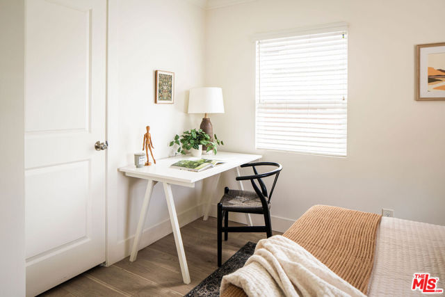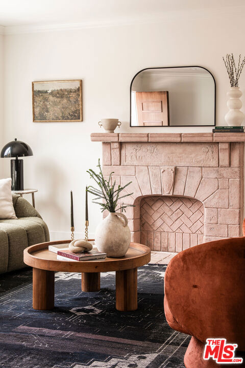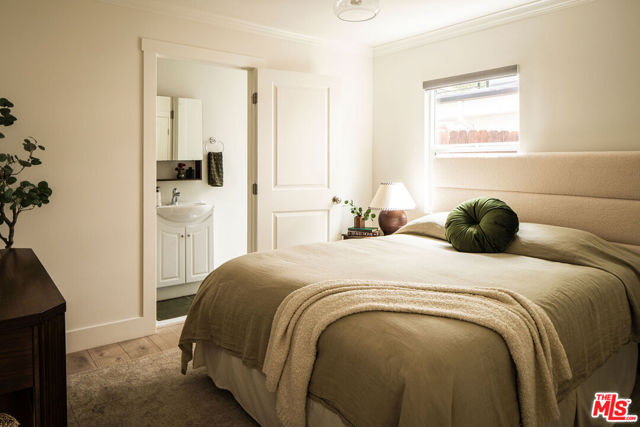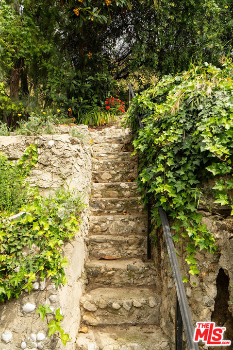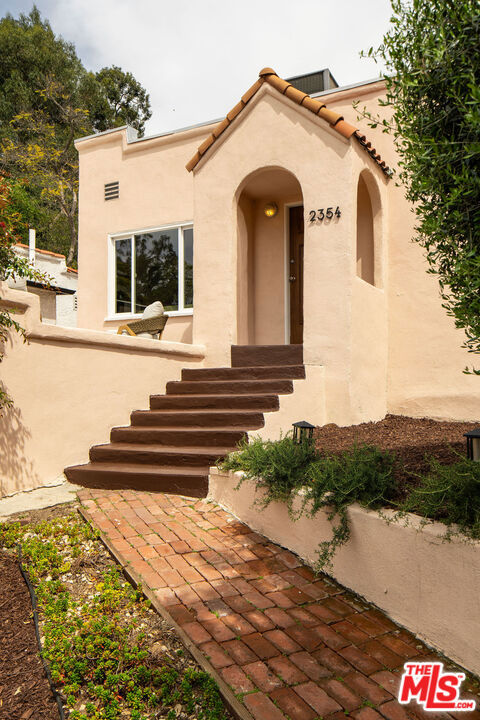 Renovated California Spanish Bungalow perched above a quiet cul-de-sac in the hills of Echo Park. Blending timeless architecture with a calm, modern sensibility. A whimsical brick path and native landscaping lead to the sun-washed peach home, complete with a welcoming arched portico. The 2-bedroom, 2-bath layout is both functional and refined, featuring a primary suite with ensuite bath and a sun-drenched living room anchored by a decorative Batchelder fireplace. The stylish eat-in kitchen with soft green cabinetry and simple white finishes flows to the laundry area with stacked washer and dryer and out to the backyard. Outdoor spaces are designed for everyday living, with garden beds for urban gardening and a terraced backyard capturing tranquil views. A one-car garage offers flexibility for a home office, gym, or creative studio, along with a driveway for additional parking. Moments from the best of Echo Park and Silver Lake, with easy access to hiking trails, the LA River bike path, NELA, Glendale, Pasadena, and DTLA.