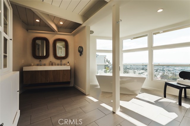 Set above the iconic Sunset Strip on a quiet hillside street, this light-filled architectural home offers a rare combination of privacy, volume, and seamless indoor-outdoor living in the Hollywood Hills.