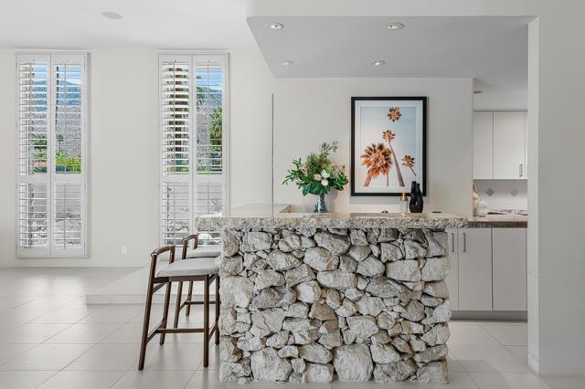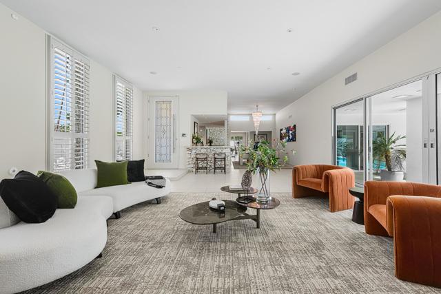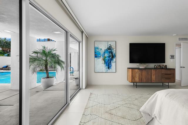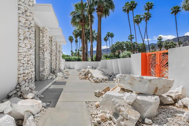 An exceptional presentation of contemporary design in Deepwell Estates, one of Palm Springs' most coveted neighborhoods. This remarkable residence is defined by soaring ceilings, an open-concept layout, and dramatic floor-to-ceiling glass that frames a stunning south-facing pool with breathtaking mountain views.Formal living and dining spaces strike the perfect balance between sophistication and comfort, featuring a striking gas fireplace, abundant natural light, and seamless indoor-outdoor flow. An adjacent bar creates an elegant transition into the spacious modern kitchen, fully equipped with a complete suite of stainless steel appliances and an expansive island ideal for both entertaining and everyday living.The primary suite serves as a private sanctuary, offering direct outdoor access and a spa-inspired bath designed for relaxation. Additional guest suites provide comfort and privacy for visitors, while a versatile bonus room- perfect as an office, media lounge, or flex space-opens directly to the pool and surrounding grounds.Every detail of this extraordinary home reflects elevated design, thoughtful craftsmanship, and effortless elegance. Recent upgrades enhance both comfort and peace of mind, including leased solar, new roof, new pool heater, and a new tankless water heater.This is a rare opportunity to own a truly incredible property in one of Palm Springs' most desirable enclaves.