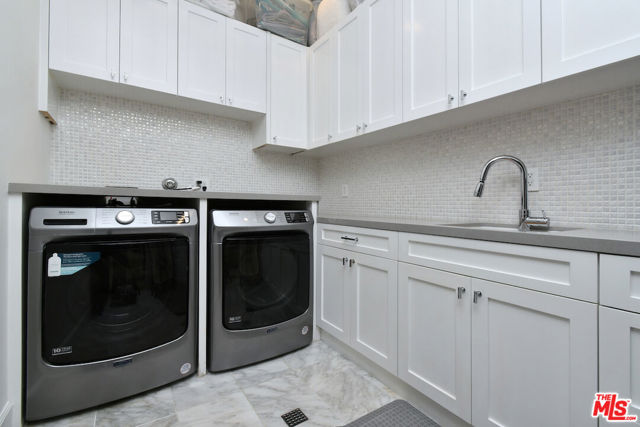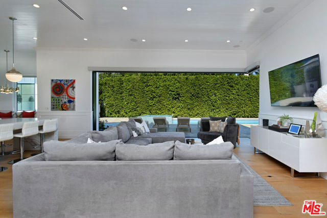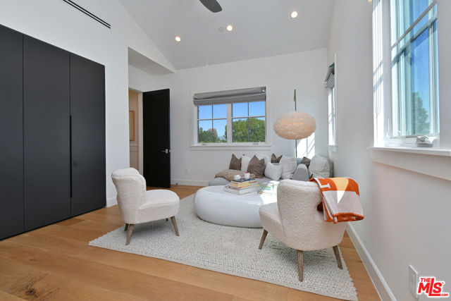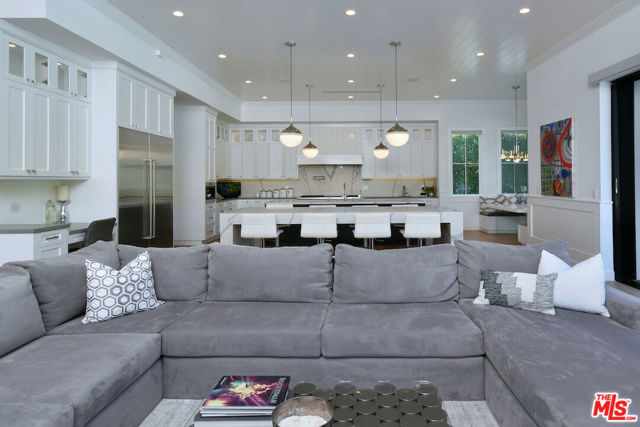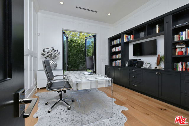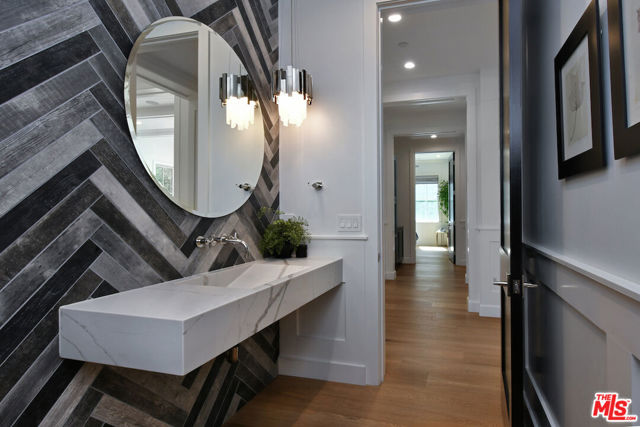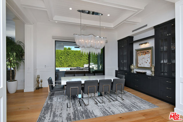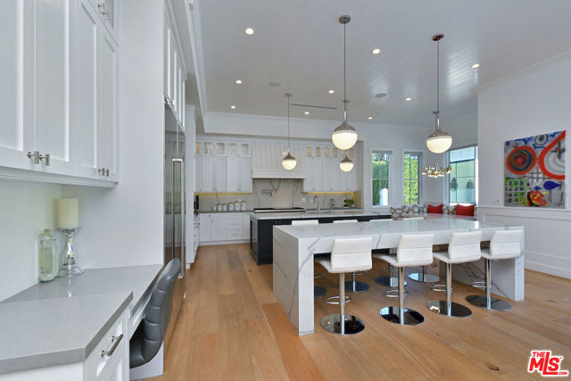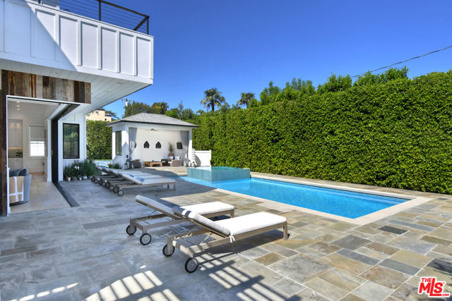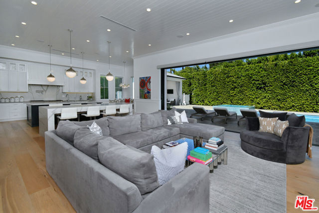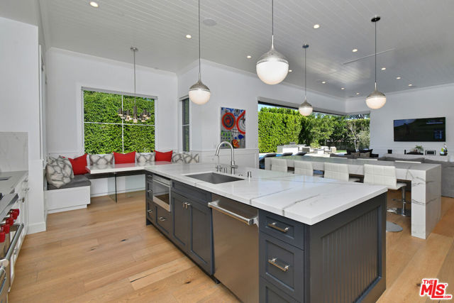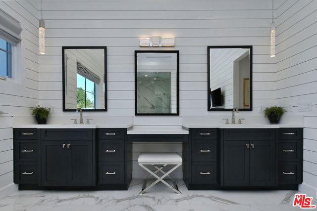Experience refined modern farmhouse living in the highly coveted Amestoy Estates. Situated on an expansive 18,000+ sq ft corner lot at the end of a prime cul-de-sac, this gated estate showcases exceptional curb appeal and thoughtful design throughout.A bright, open-concept floor plan is enhanced by oversized windows that flood the home with natural light, while custom built-ins add sophistication to the formal living and dining spaces. A striking wine room is perfectly positioned for both function and display.The gourmet kitchen is designed for both everyday living and entertaining, featuring top-of-the-line Wolf appliances, dual oversized quartz islands, a butler's pantry, and abundant storage.Seamless indoor-outdoor flow is achieved through floor-to-ceiling pocket sliding doors, opening to a true entertainer's backyard complete with a Pennsylvania bluestone patio, resort-style pool, zero-edge spa, outdoor living room with a double-sided fireplace, pavilion, sports court, BBQ area, fire pit, and a generous grassy lawn. The luxurious primary suite offers vaulted beamed ceilings, a fireplace, and a wraparound balcony with tranquil treetop views. Upstairs includes three additional spacious bedrooms, a built-in workstation, and a dedicated laundry room. Downstairs features a guest bedroom, private office, and a plush home theater with a state-of-the-art sound system. Additional highlights include a Control4 smart home system and a gated motor court with ample parking. Ideally located near Encino's premier shopping, dining, and lifestyle amenities, this home offers the perfect blend of luxury and convenience.