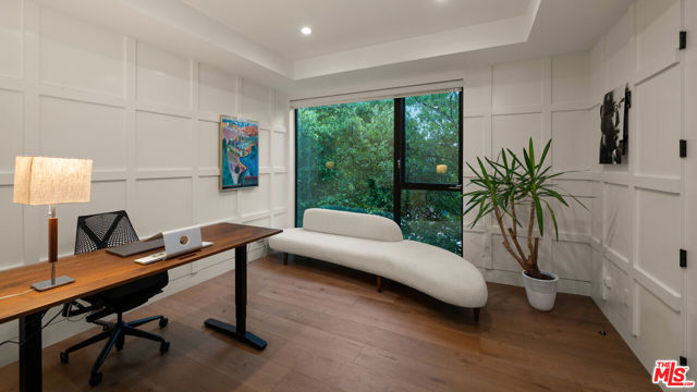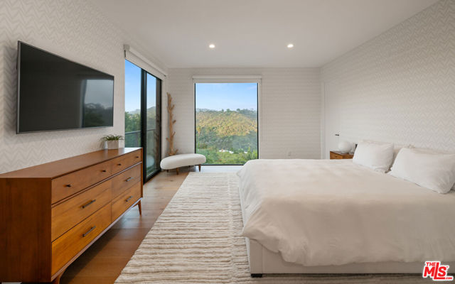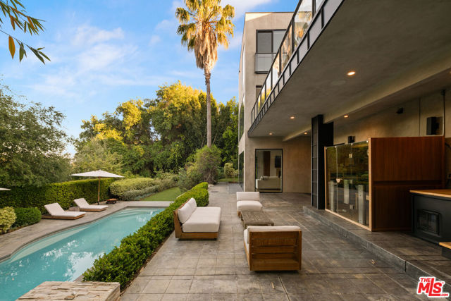 Tucked behind gates and mature landscaping, 1552 Bel Air presents a refined take on modern living in one of Los Angeles' most coveted enclaves. Clean lines and expansive glass invite natural light throughout, showcasing serene hillside vistas and creating a seamless indoor-outdoor flow. The open-concept layout is ideal for entertaining, anchored by a chef's kitchen outfitted with top-tier appliances and complemented by a sleek wine display. The primary suite offers a private retreat with a fireplace and spa-like bath, while additional spaces include guest accommodations, a dedicated office, and a home gym. Outside, the resort-style grounds feature a pool with cascading water features, multiple lounging areas, and lush, manicured landscaping. Moments from the best of Bel Air and Beverly Hills, this residence delivers elevated design, privacy, and effortless access to world-class amenities.