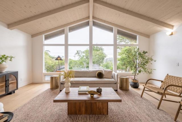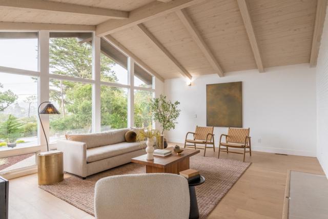 Reimagined for modern living by Maverick Design, this thoughtfully updated home is tucked away on a quiet cul-de-sac in the heart of Pebble Beach, offering a seamless blend of style, comfort, and functionality. Perched above the street, the home opens to effortless single-level living. Warm hardwood floors, designer lighting, and an abundance of natural light create an inviting atmosphere throughout. The formal living room welcomes you with vaulted ceilings, expansive windows, a cozy fireplace, and a peek of ocean views. At the center of the home, the gourmet kitchen is beautifully appointed with Taj Mahal quartzite countertops, white oak cabinetry, and ample storage, including space beneath the oversized island and a walk-in pantry. Just off the kitchen, a laundry room adds convenience, while the formal dining room is ideal for gatherings. A powder room completes the main living spaces. A backup generator offers comfort and peace of mind. An oversized garage offers parking for 4+ cars with ample storage. The backyard features a private lawn area, perfect for relaxing or entertaining. Ideally located just minutes from MPCC and near Poppy Hills and Spanish Bay golf courses, this home offers easy access to scenic walks, world-class golf, and the nearby coastline.